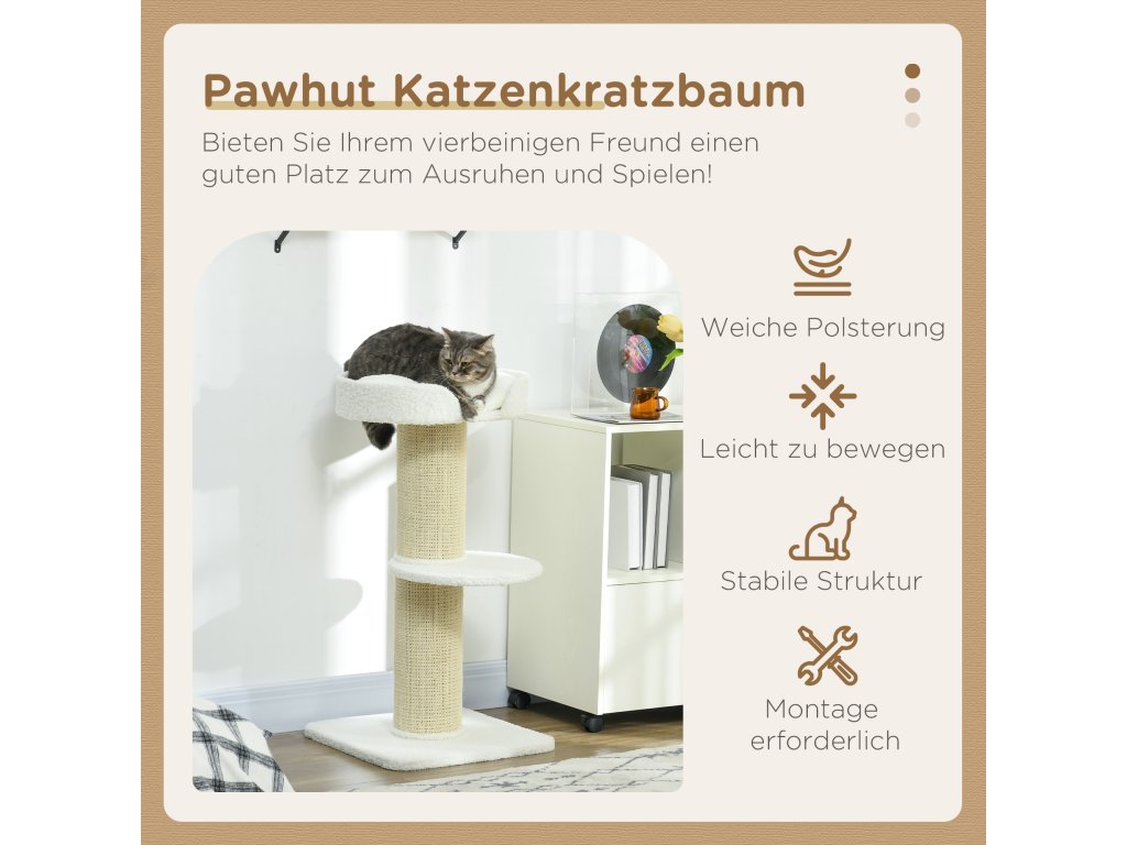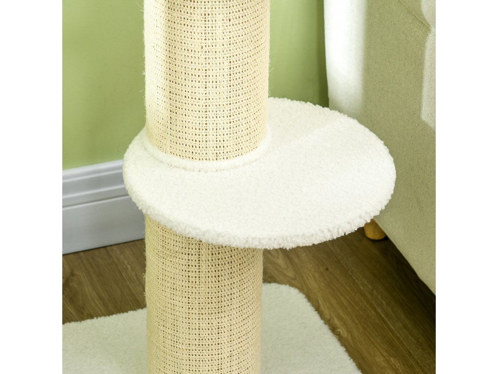PawHut kočičí strom 91cm hrací strom s pelíškem pro kočky, platforma z jehněčí vlny krémová