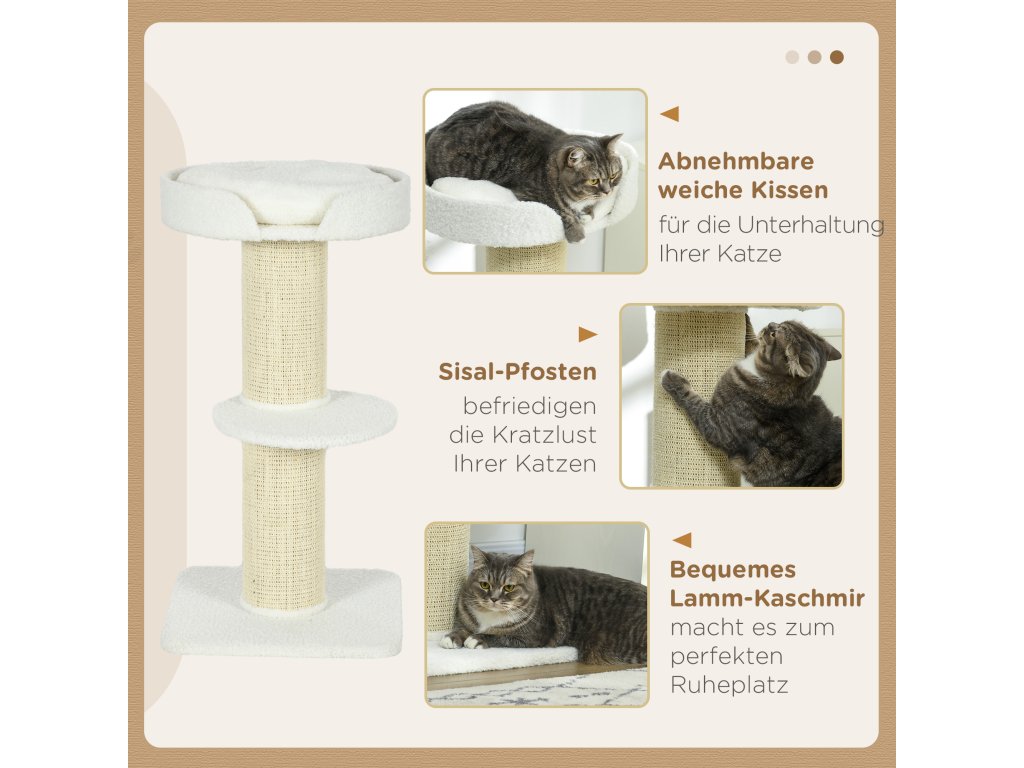 - ✔ Horní sedací plošina se zvýšeným okrajem nabízí vašim kočkám pohodlné místo k odpočinku