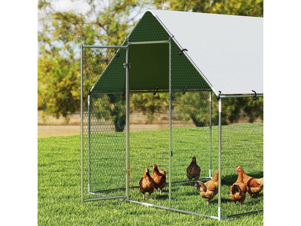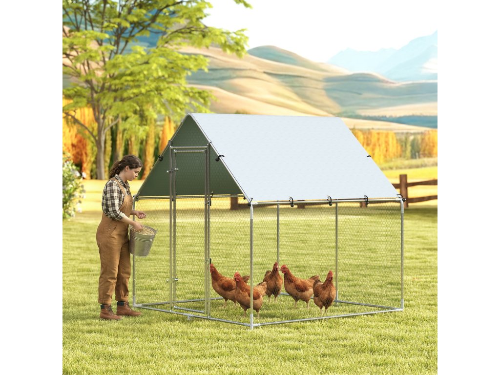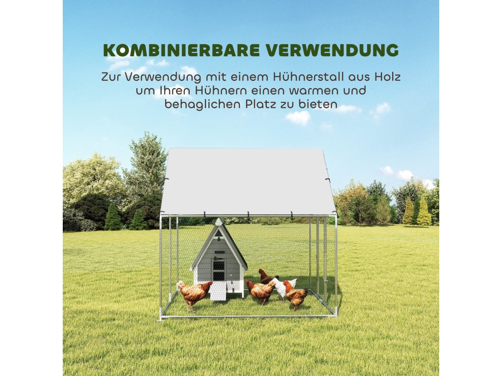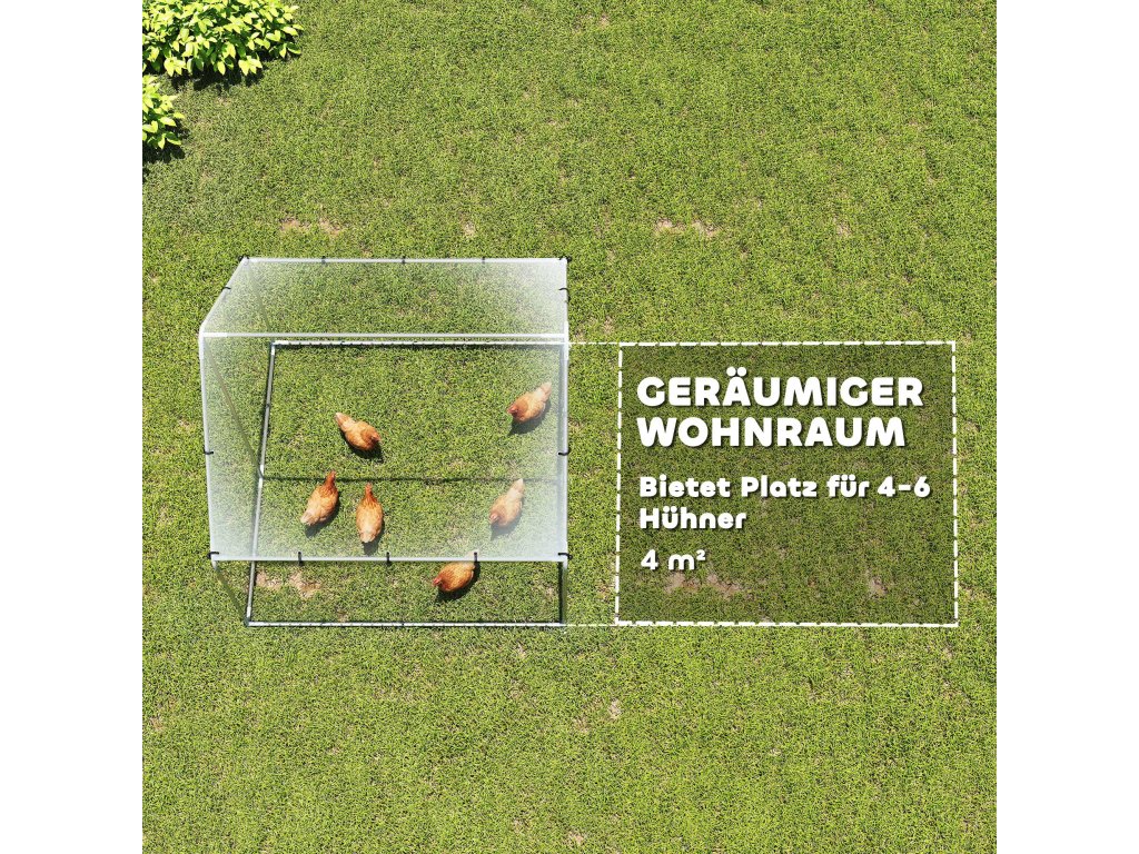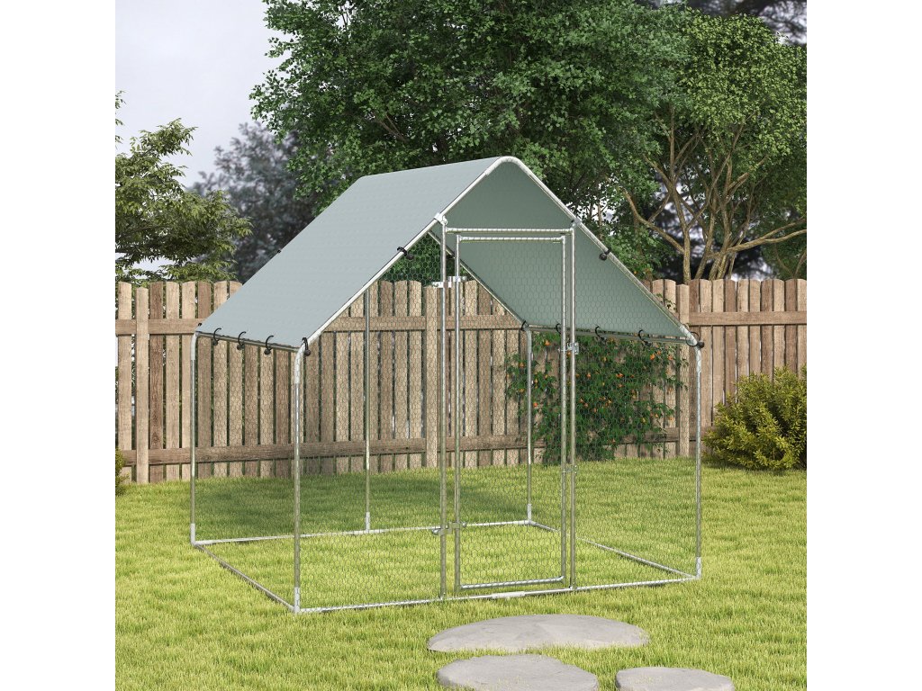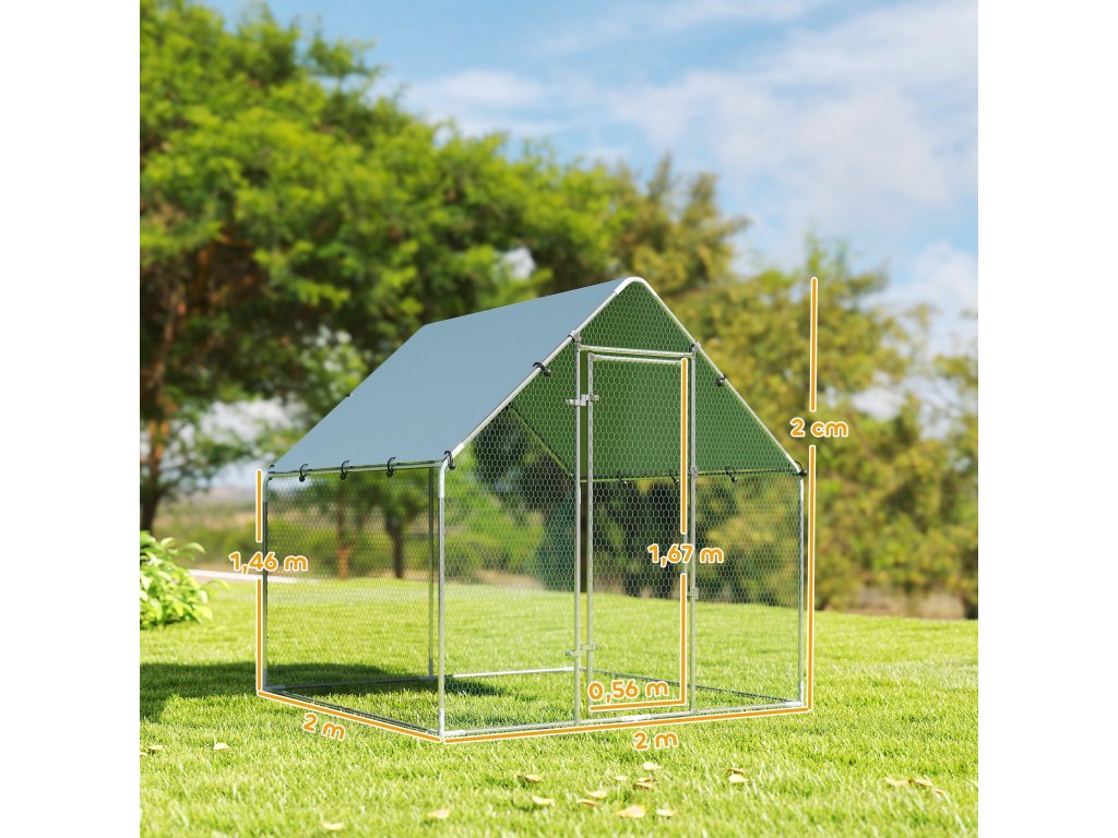 PawHut kurník pro volný chov, pozinkovaná ocel, s povětrnostně odolnou UV střechou a uzamykatelnými dveřmi, 2x2x2 m, stříbrný