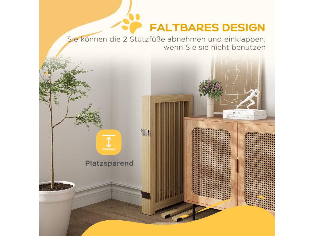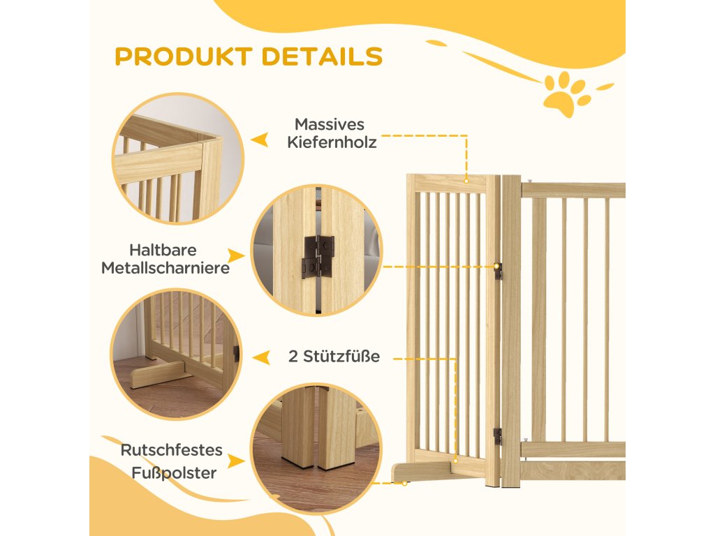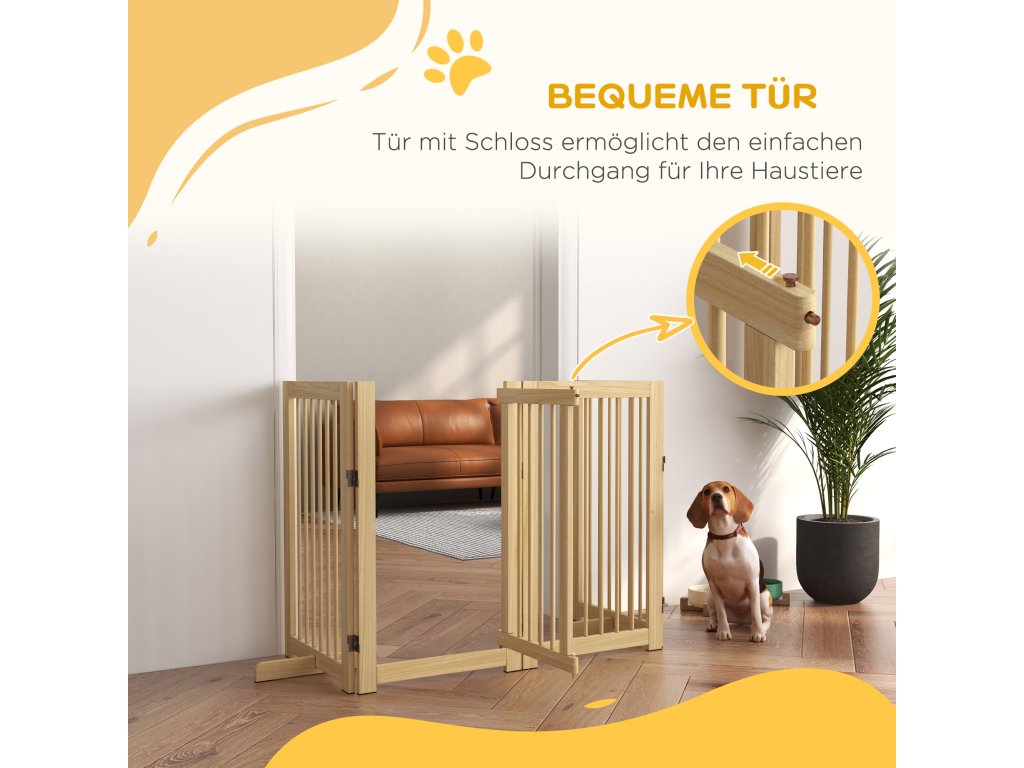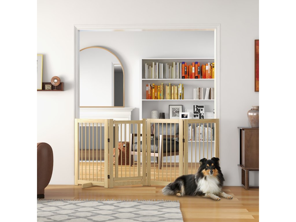 PawHut ohrádka pro psy, volně stojící, skládací, dvířka a nožičky, dřevěný rám, 220x36x91cm
