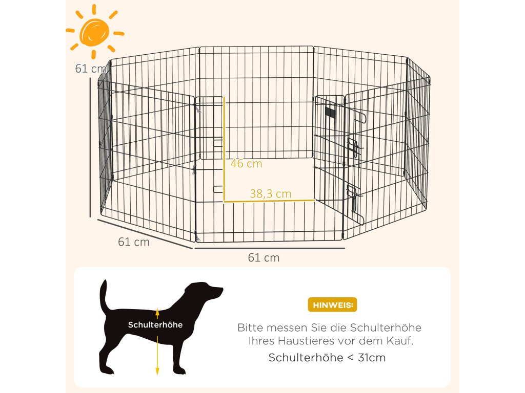 PawHut ohrádka pro štěňata a malé psy, s dvířky, vhodná pro vnitřní i venkovní použití, 61 cm, černá