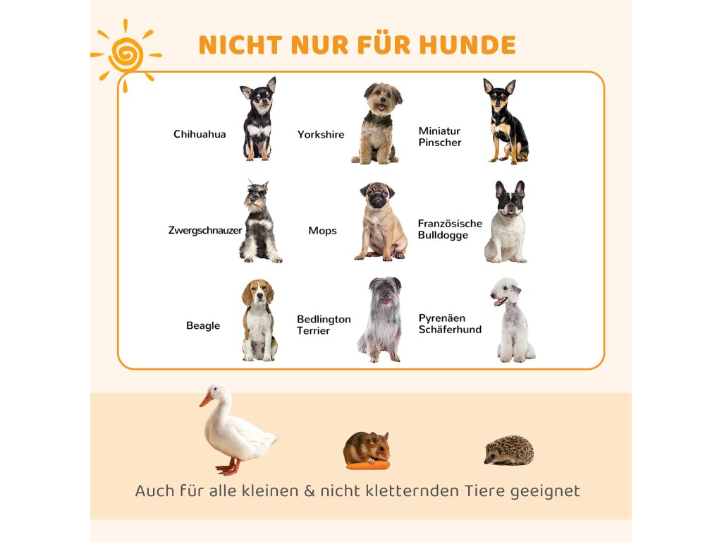 Použití v interiéru i exteriéru: Používejte tuto ohrádku pro štěňata k výcviku nebo jako bezpečnou hrací plochu. Ideální pro bezpečné uložení domácích mazlíčků. Vhodné pro malé psy do 31 cm v kohoutku a o hmotnosti do 10 kg.