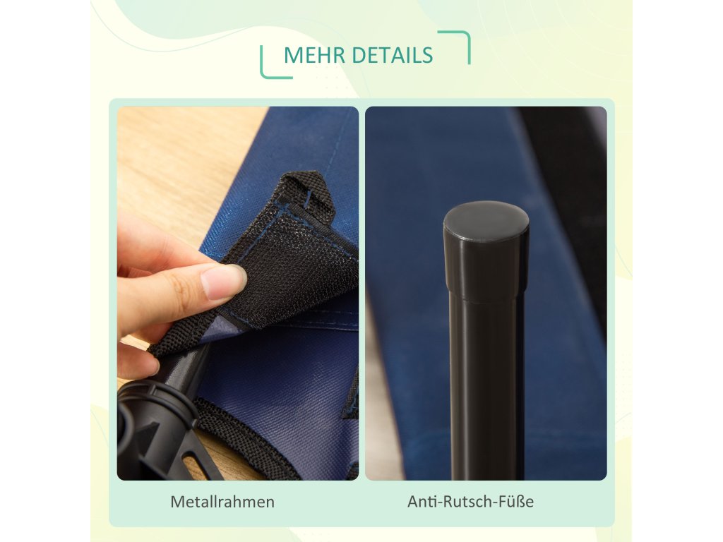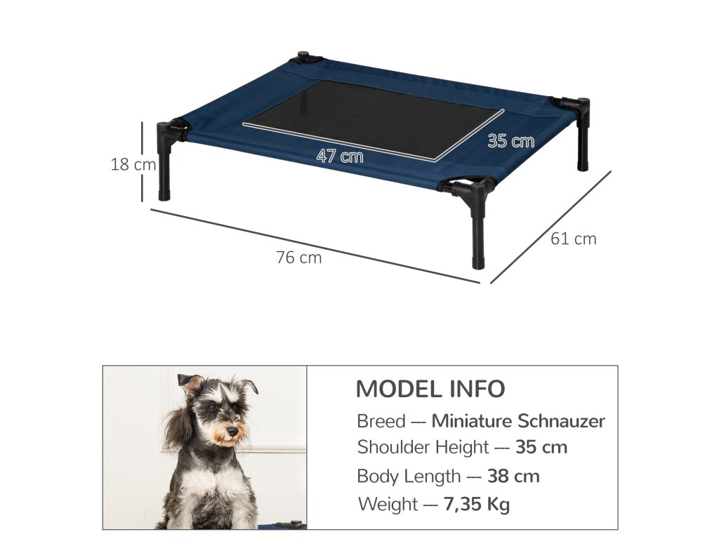 Tento vyvýšený pelíšek pro psy je skvělým řešením pro cestování nebo kempování. Má robustní stříbrný kovový rám s látkovým potahem. Lze jej snadno sestavit i rozložit a převážet spolu s ostatním vybavením na kempování. Skvělé místo pro odpočinek a spánek vašeho domácího mazlíčka na cestách. Lze snadno čistit vodou a mýdlem, což zajistí dlouhou životnost při používání.