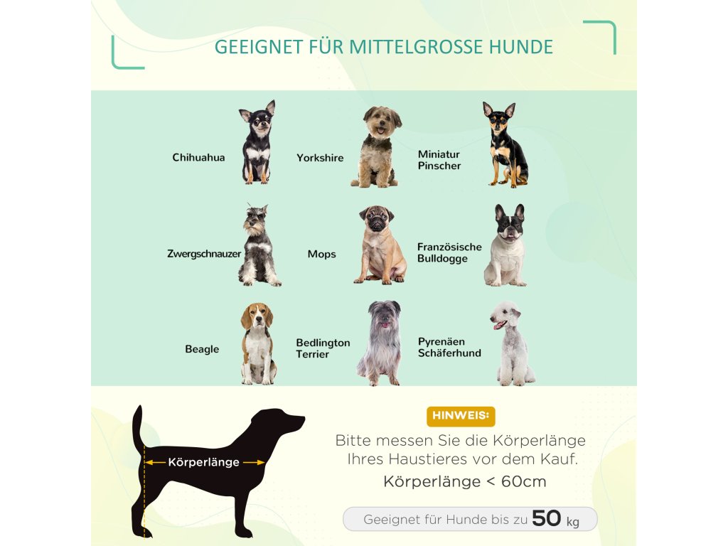 - ✔ Vhodné pro středně velké psy do 20 kg a délky těla menší než 50 cm