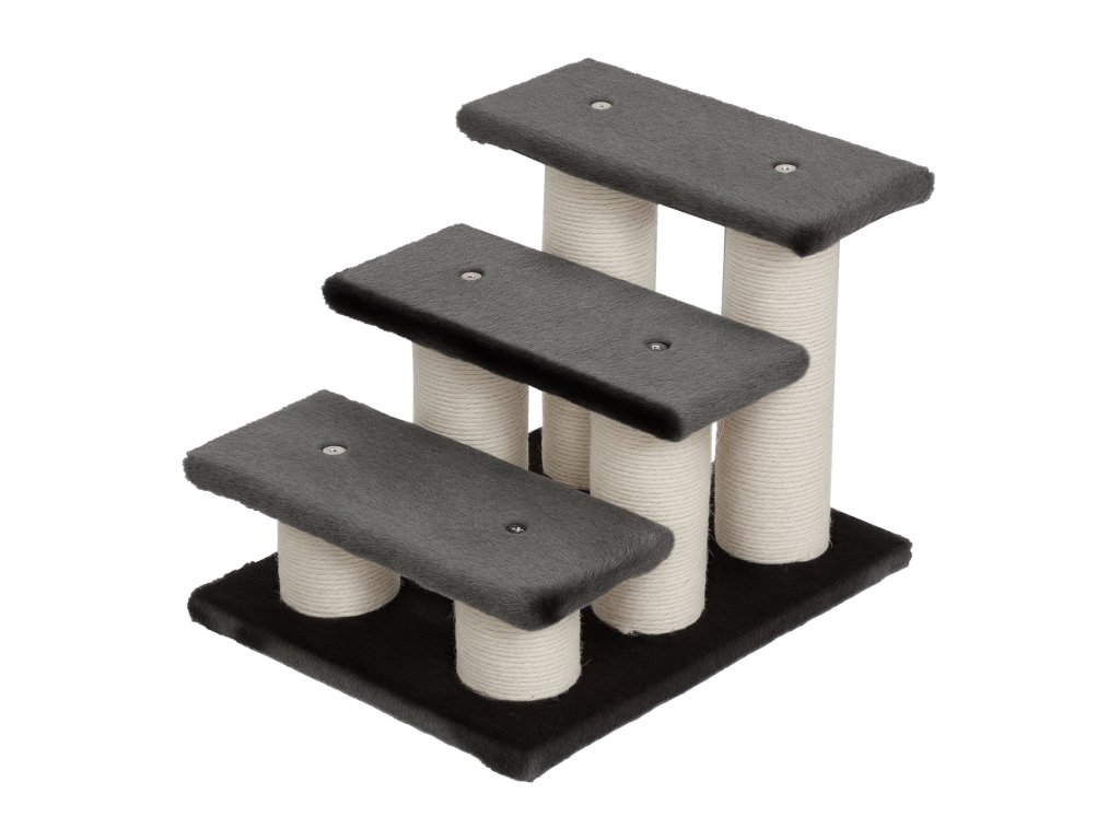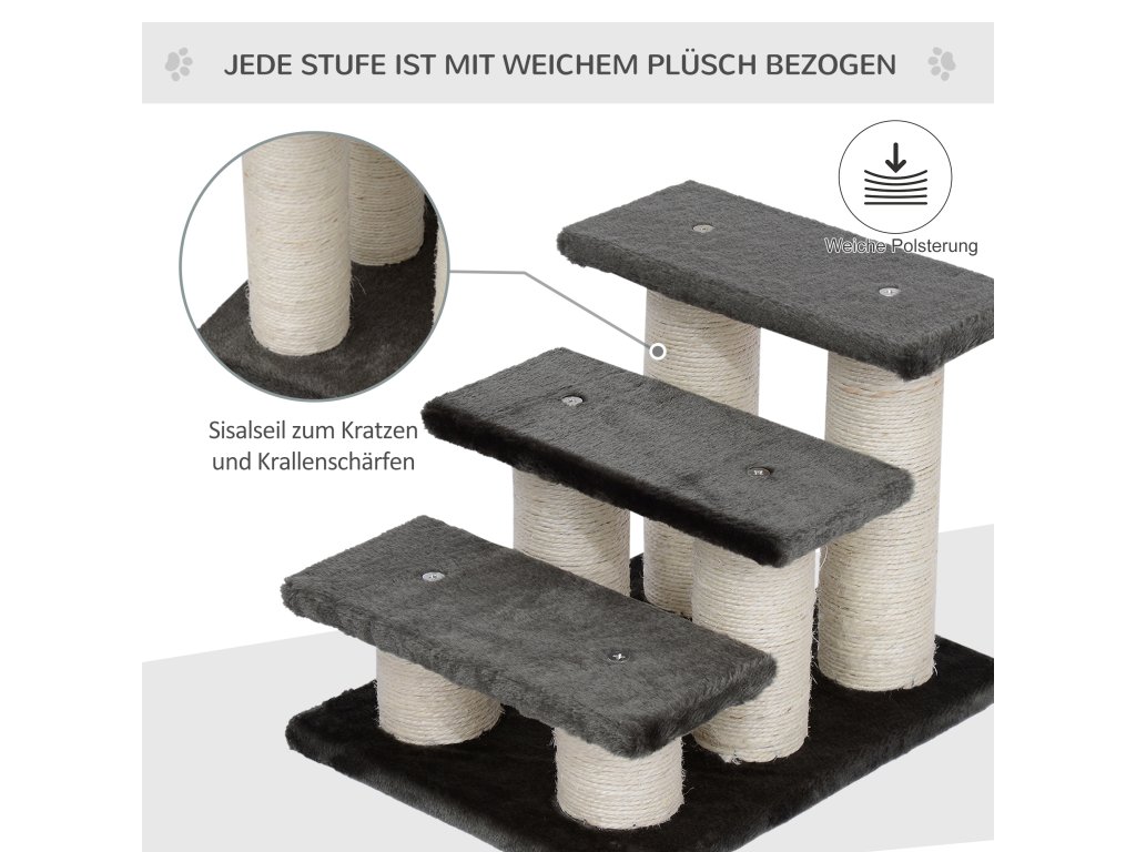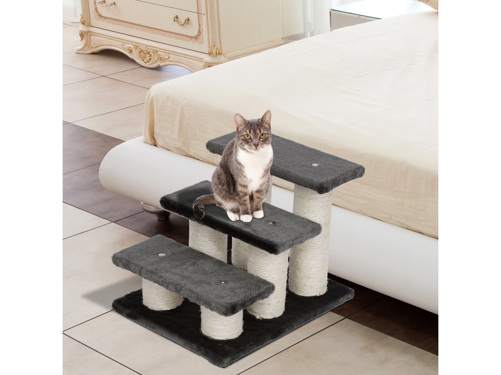 PawHut Psí schody 3 schody 34 cm vysoké Pet schody pro psy kočky kočky schody pro psy rampa vstupní pomůcka pro postel, pohovku, gauč tmavě šedá
