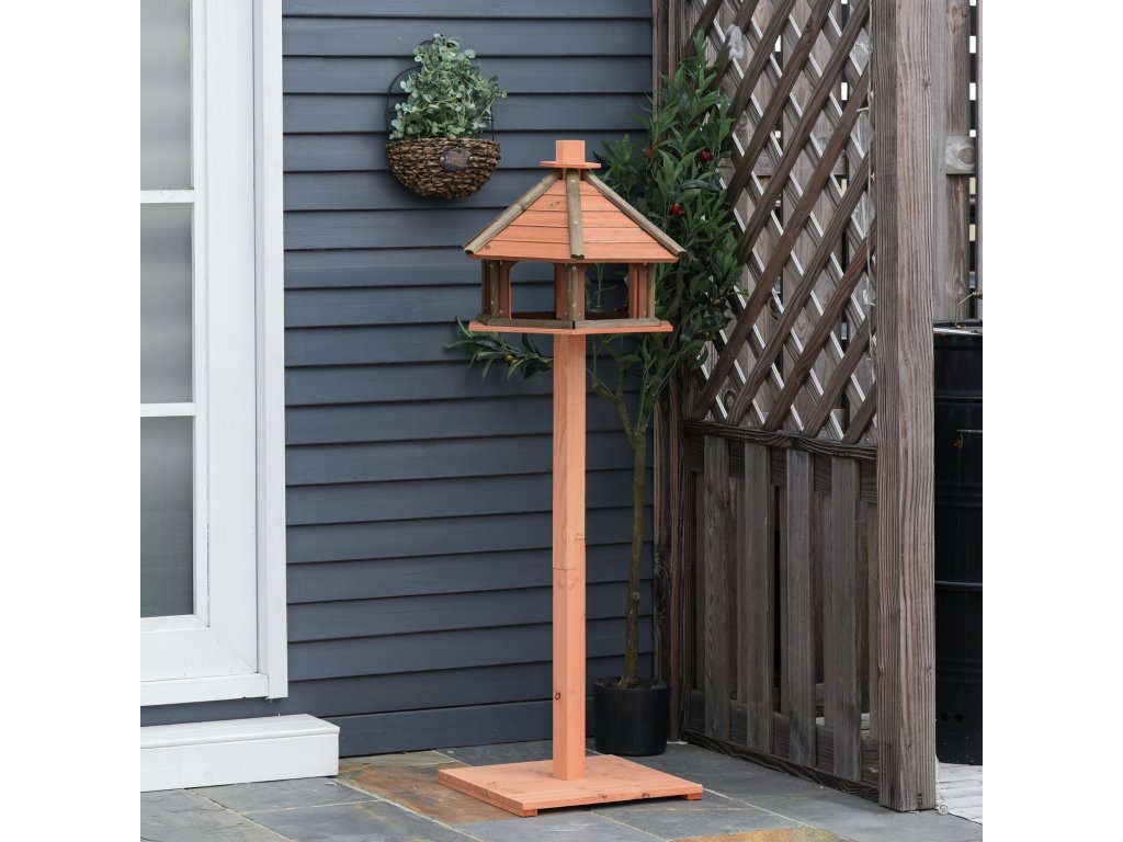 PawHut ptačí budka se stojanem odolná proti povětrnostním vlivům krmítko pro ptáky se střechou odolnou proti povětrnostním vlivům dřevěná krmítka pro volně žijící ptáky Ø52 x 130H cm příroda