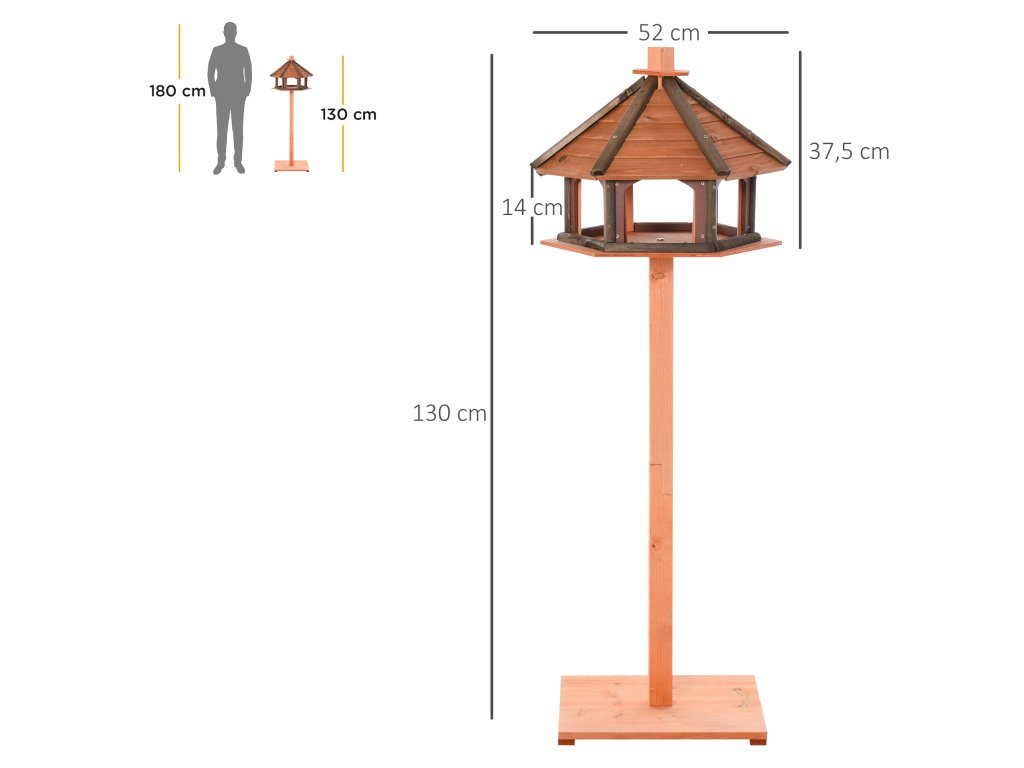 - Údaje o výrobku: Celkové rozměry: Ø52 x H130 cm. Rozměry horního domečku: 52L x 43W x 37,5H cm, nutná montáž.