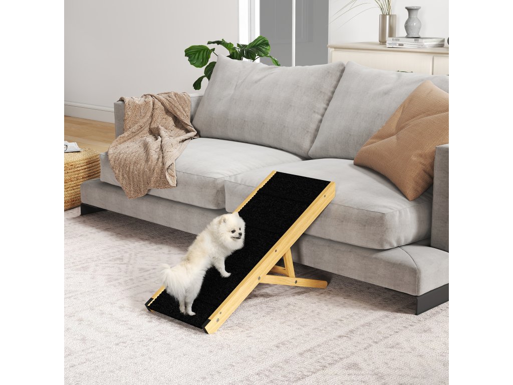 - Bezpečná a stabilní: Tato psí rampa s mírným sklonem od 15° do 35°, vyrobená z borovicového dřeva a vybavená protiskluzovým kobercem, nabízí bezpečnost a pohodlí pro vašeho domácího mazlíčka.