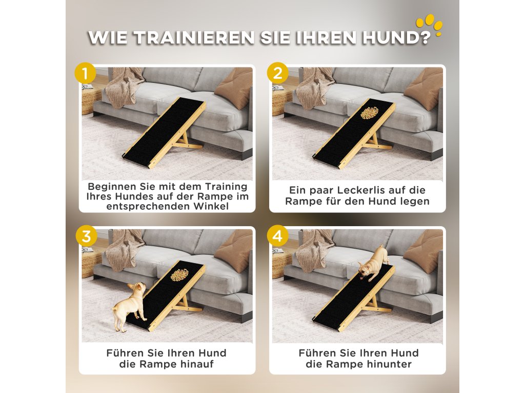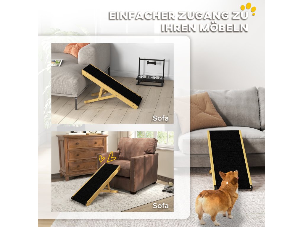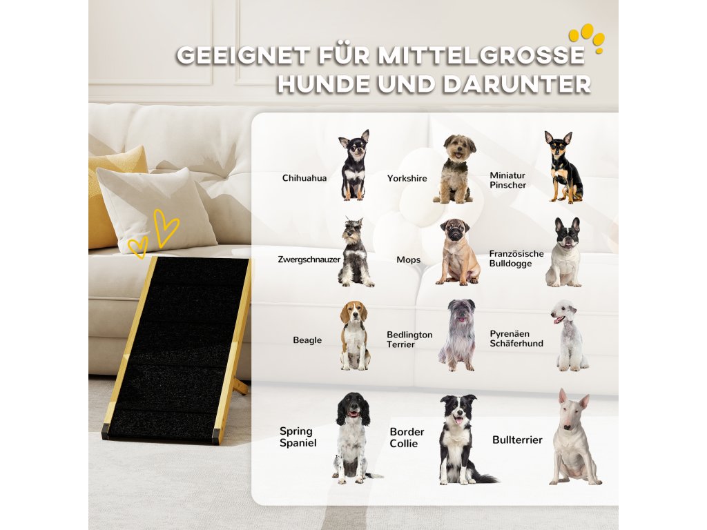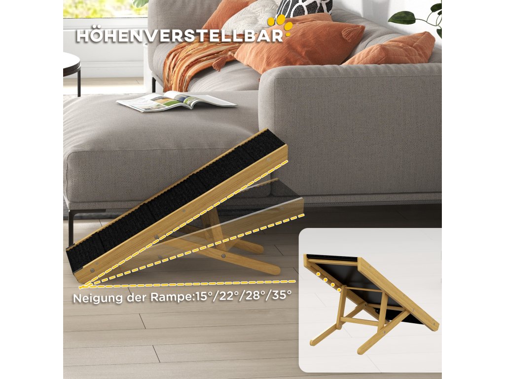 PawHut rampa pro zvířata, nastavitelná, 4 stupně, protiskluzová, borovicové dřevo, skládací, pro psy do 15 kg