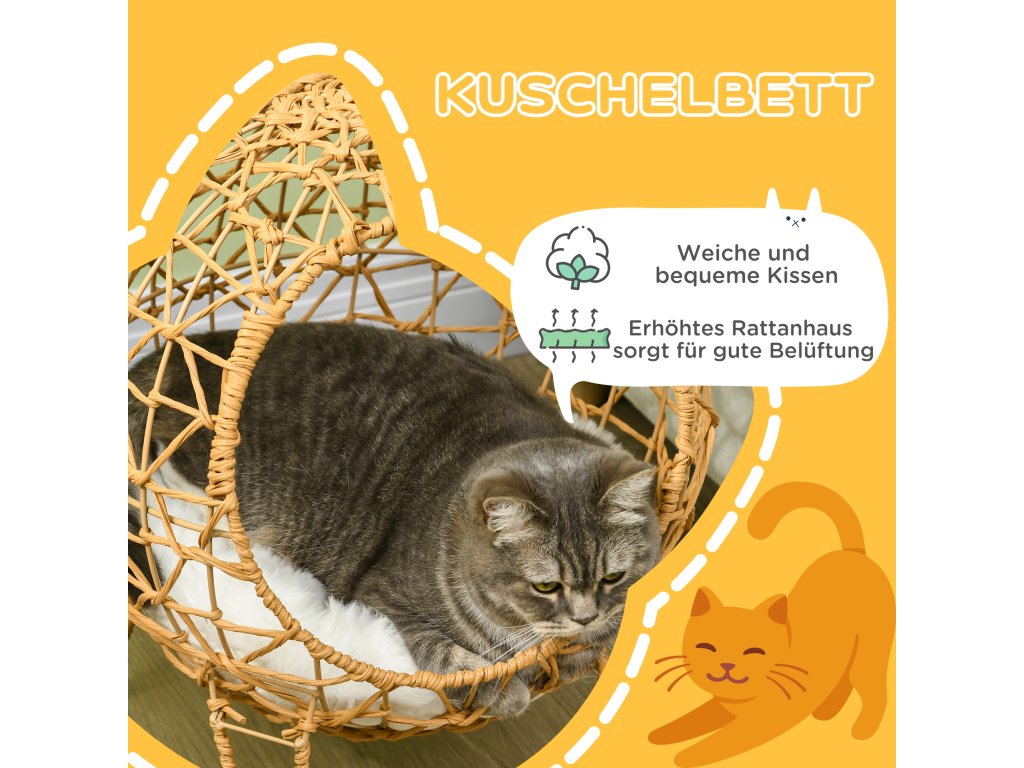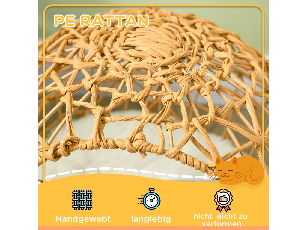 - Pevná konstrukce: Čtyři pevné ocelové nohy zajišťují, že se ratanový byt nepřevrátí a nezraní vašeho mazlíčka.
