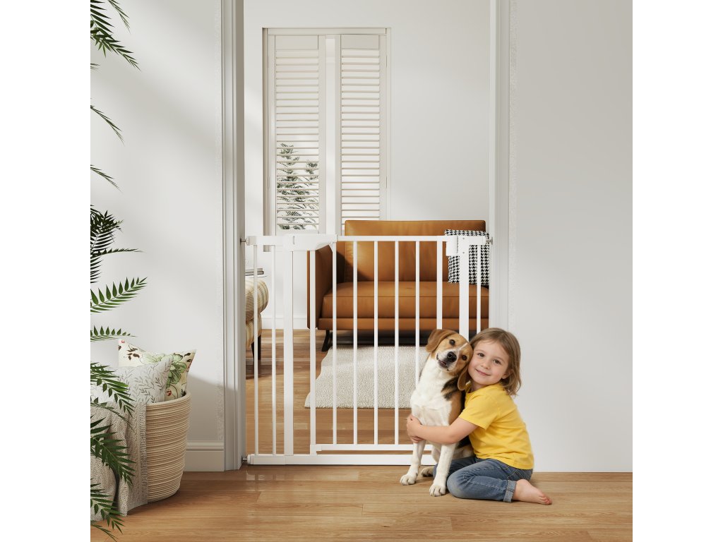 Bezpečnostní branka pro miminka a domácí mazlíčky: Tato bezpečnostní branka, testovaná dle ASTM, SOR2016-179, EN1930:2011 a EN71-3, pasuje do otvorů o průměru 76–89 cm a výšce 76 cm. Udrží děti ve věku 6 až 24 měsíců a malé až středně velké psy bezpečně uvnitř. Ideální pro schody, dveře a chodby.