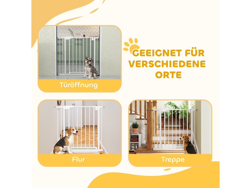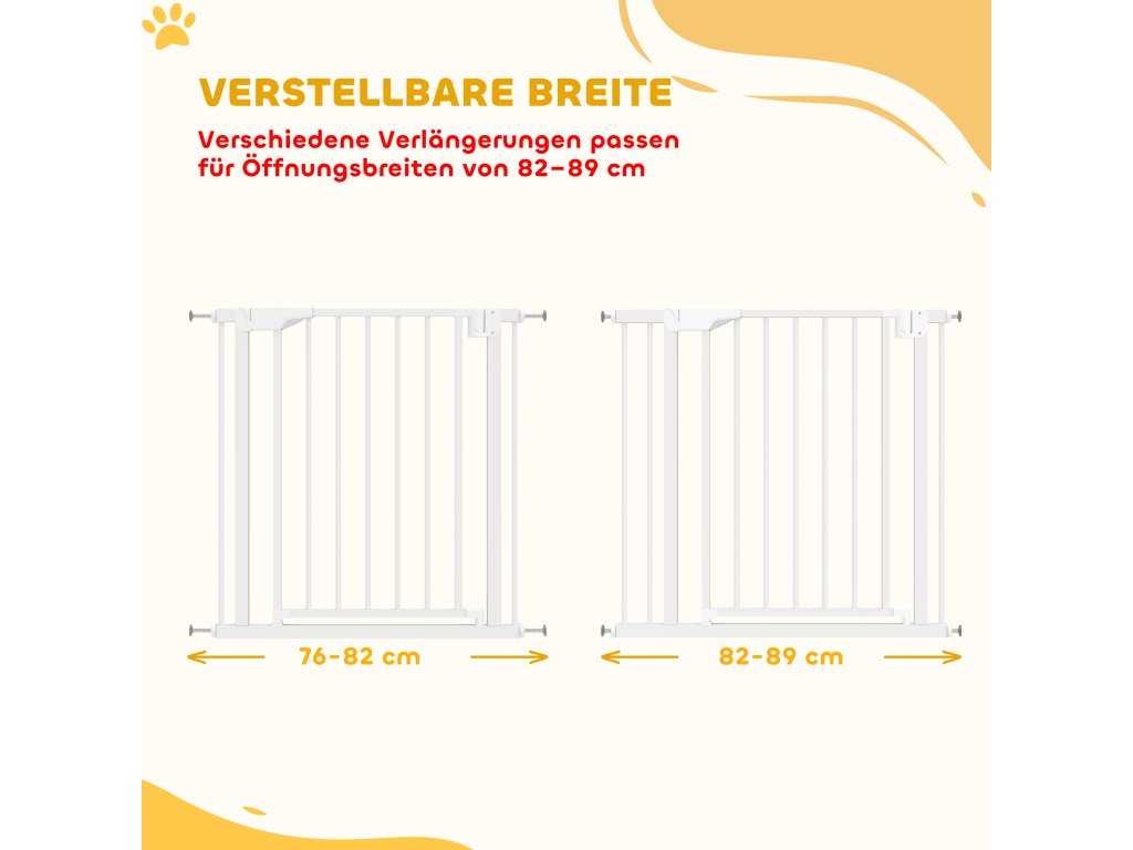 PawHut Schodišťová branka, Bezpečnostní branka bez vrtání, s automatickým zavíráním pro děti, Kuchyň, Schody, 76-89 x 76 cm, Bílá