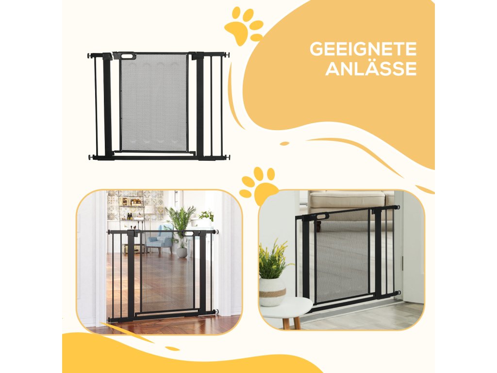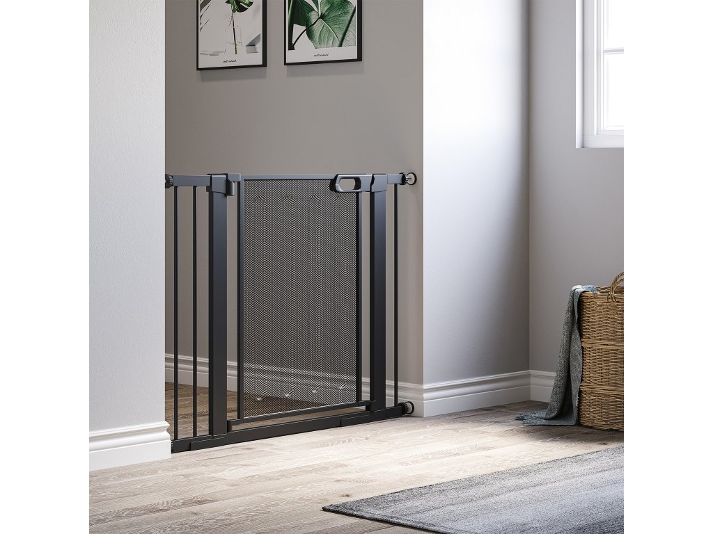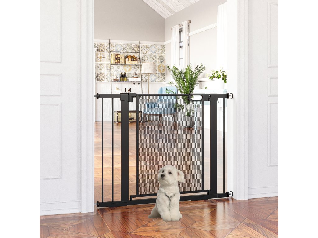PawHut schodišťová branka pro psy, nastavitelná od 75 cm - 103 cm, černá