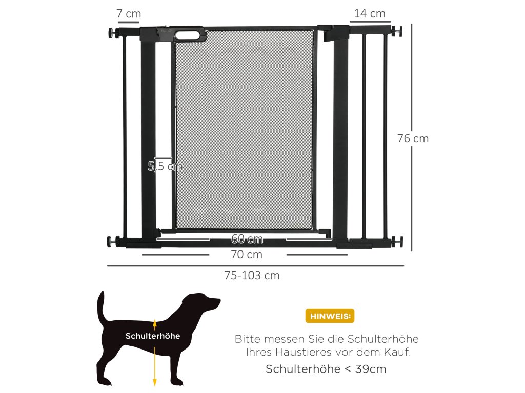 - ✔ Nastavitelná šířka dveřní mřížky v rozmezí 75-103 cm. Před nákupem si prosím změřte svůj otvor