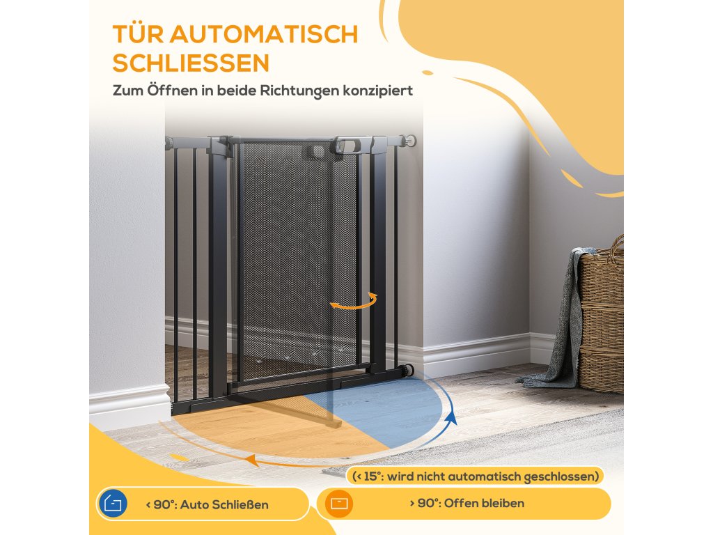 - Snadný přístup: Dveřní bezpečnostní branku lze otevřít v obou směrech, což usnadňuje průchod. Vhodná pro dveře, chodby a schodiště