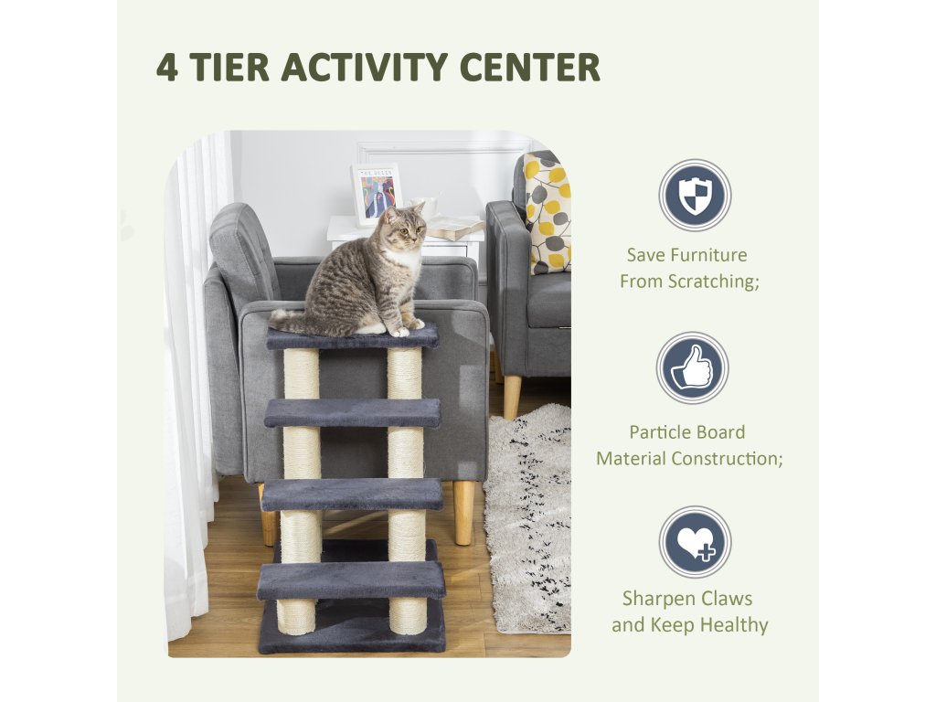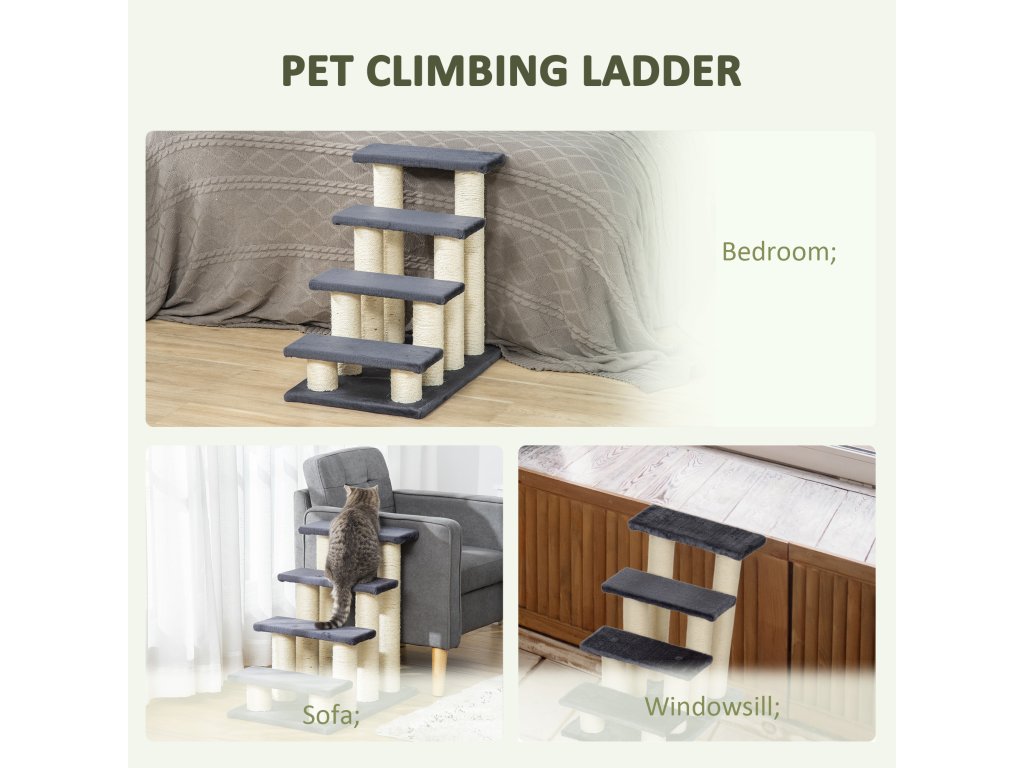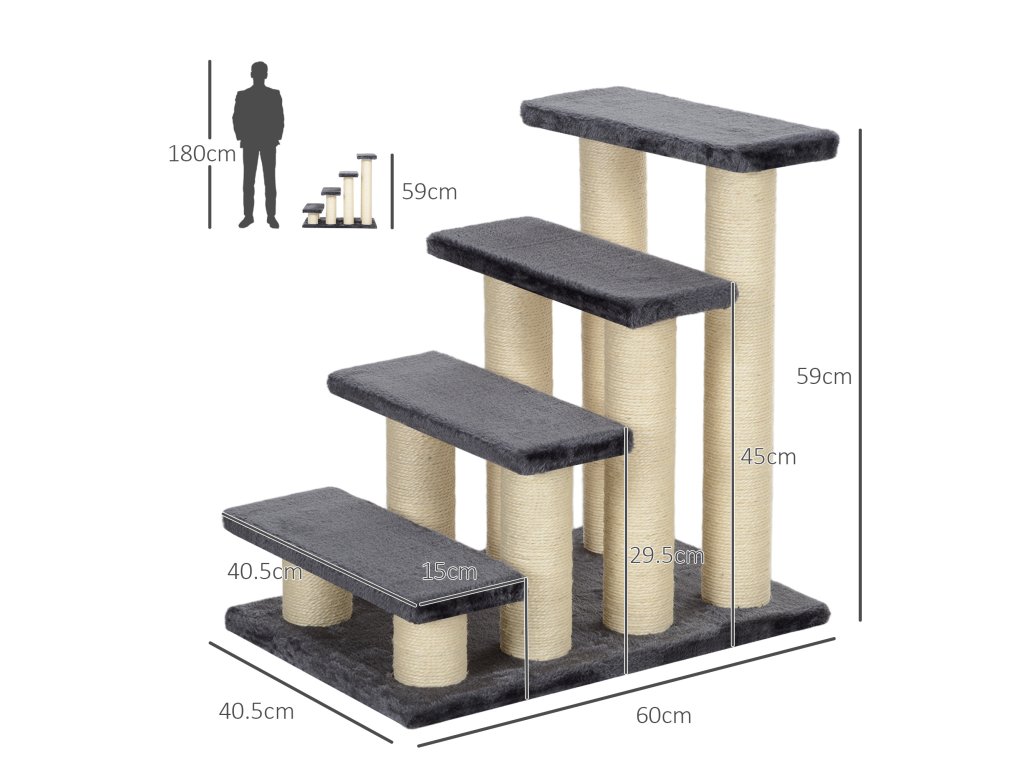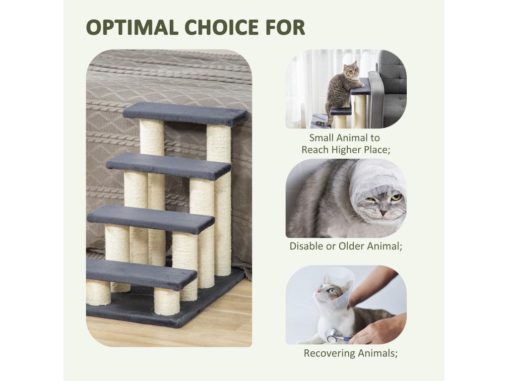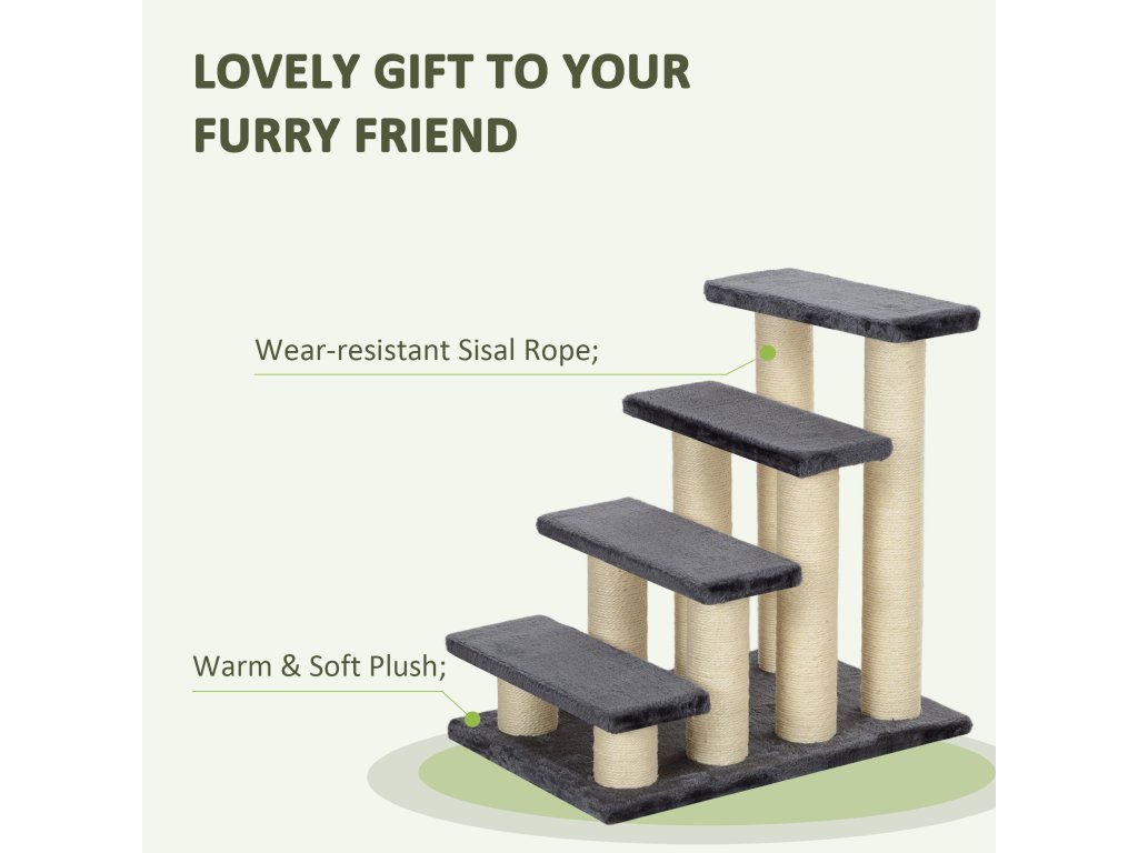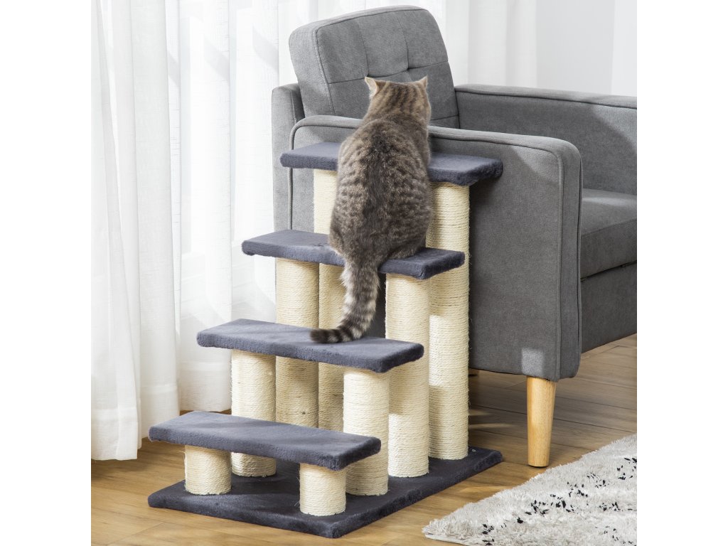 PawHut schody pro psy 4 schody 59 cm vysoké Schody pro psy a kočky Psí rampa Kočičí schody Pomůcka pro přístup k posteli, pohovce, gauči Šedá barva