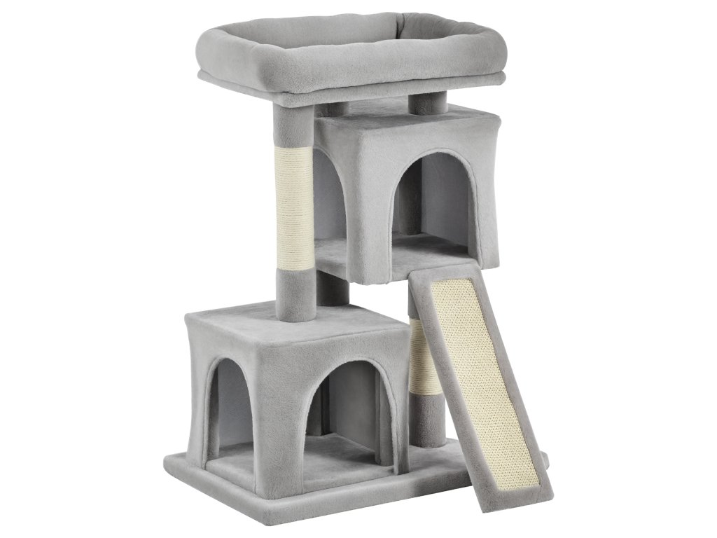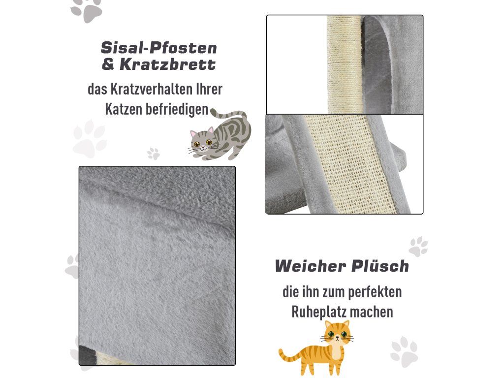 Škrabadlo pro kočky od společnosti PawHut dokáže vaše mazlíčky zaměstnat na dlouhé hodiny. Nabízí místo na hraní, odpočinek a broušení drápků. Škrabadlo pro kočky má dvě jeskyně a několik ploch na ležení, které jsou vystlané měkkým plyšem. Součástí je sisalový sloupek a škrabadlo pro broušení drápků. Na tomto robustním kusu kočičího nábytku se mohou vaši mazlíčci vyřádit do sytosti.