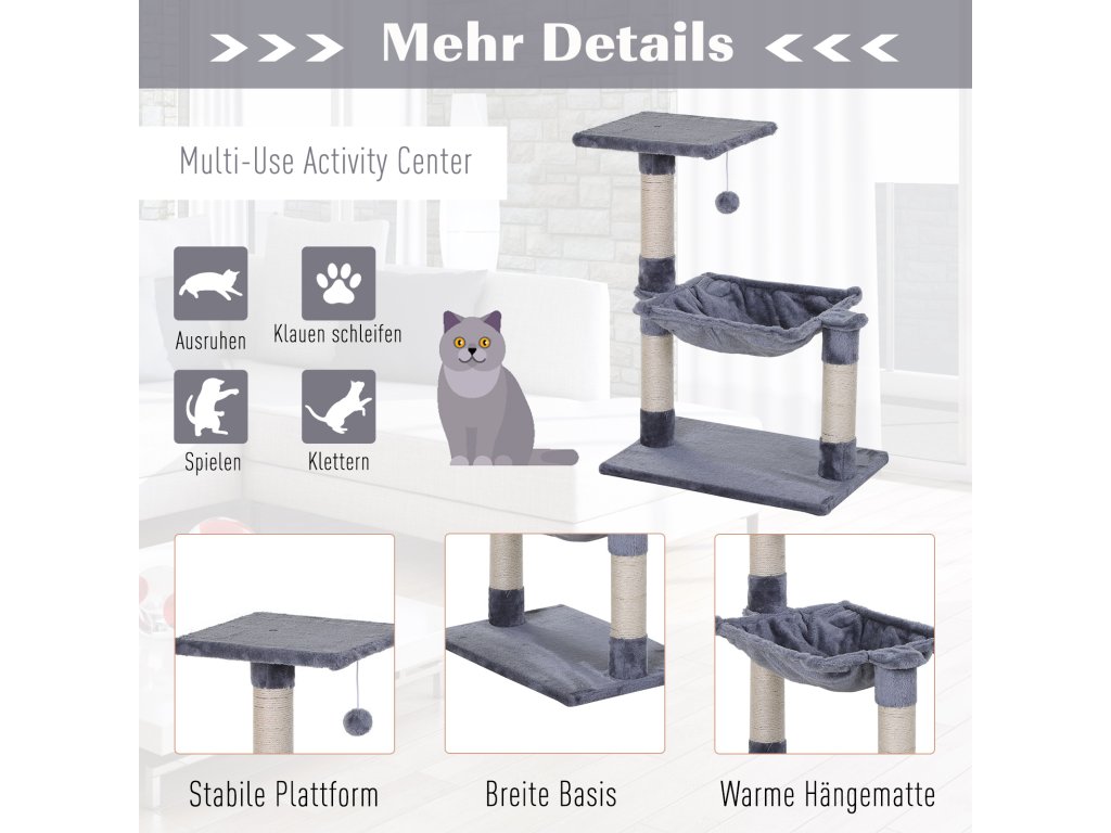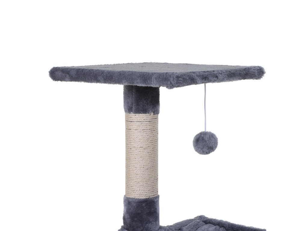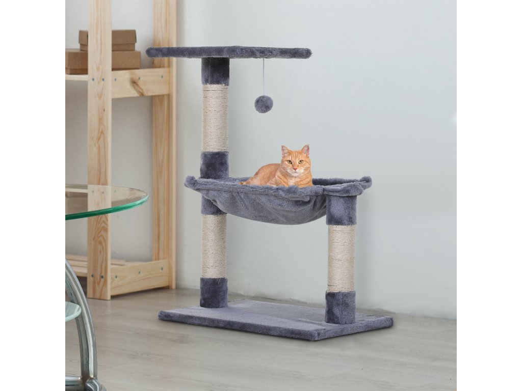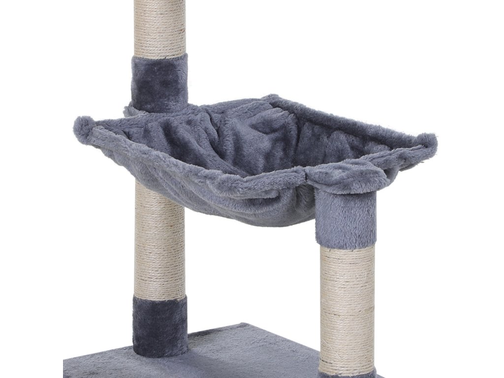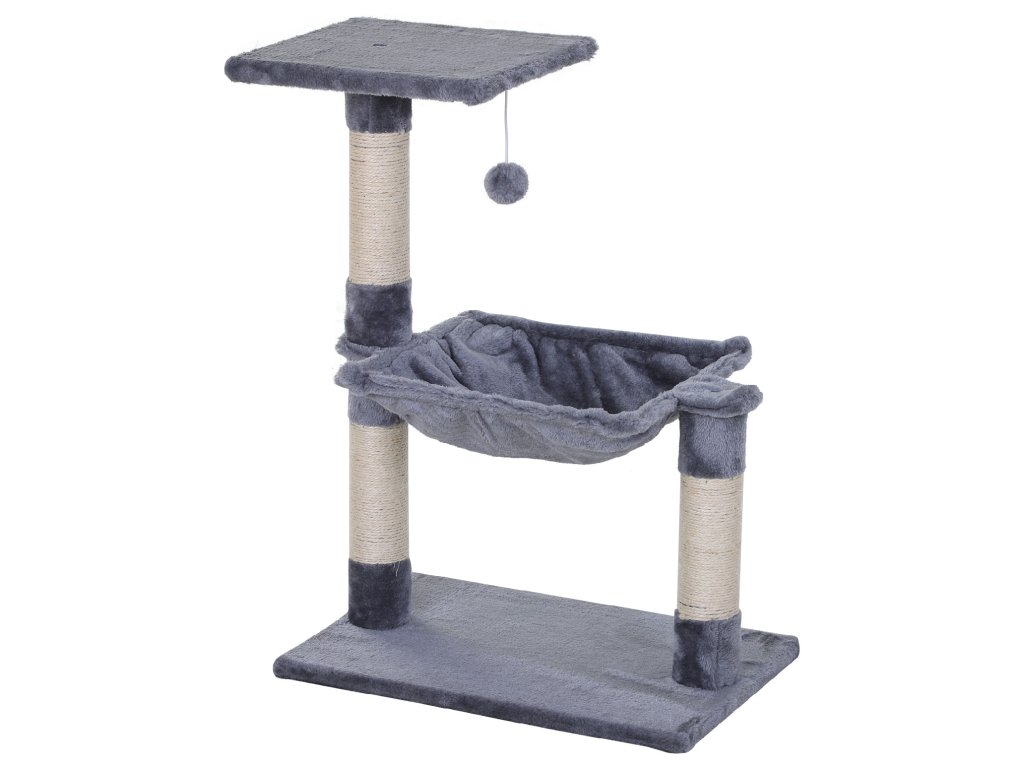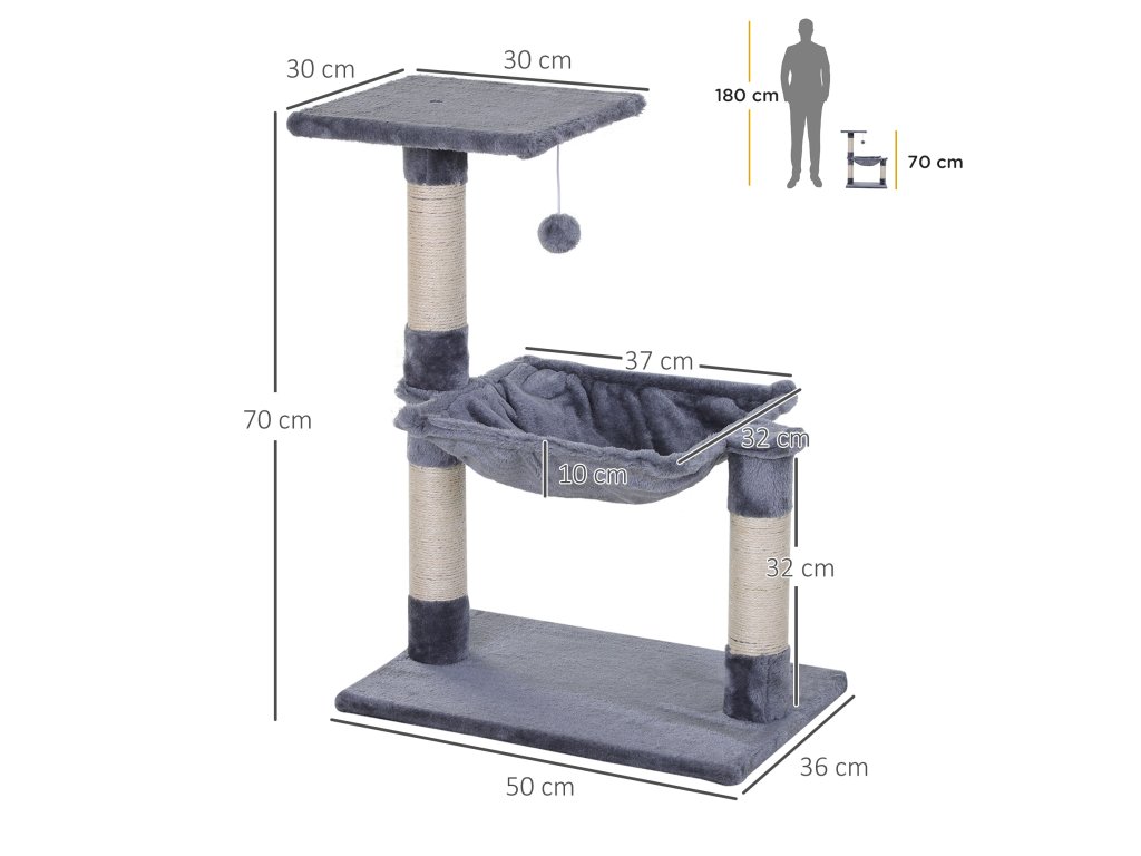 PawHut šplhací strom pro kočky se sisalovým sloupkem plyšová houpací síť dřevotříska šedá 50 x 36 x 70 cm