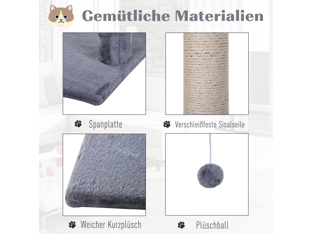 - Měkký plyš: Škrabadlo je potaženo měkkým a hřejivým plyšem, takže je ideálním místem k odpočinku
