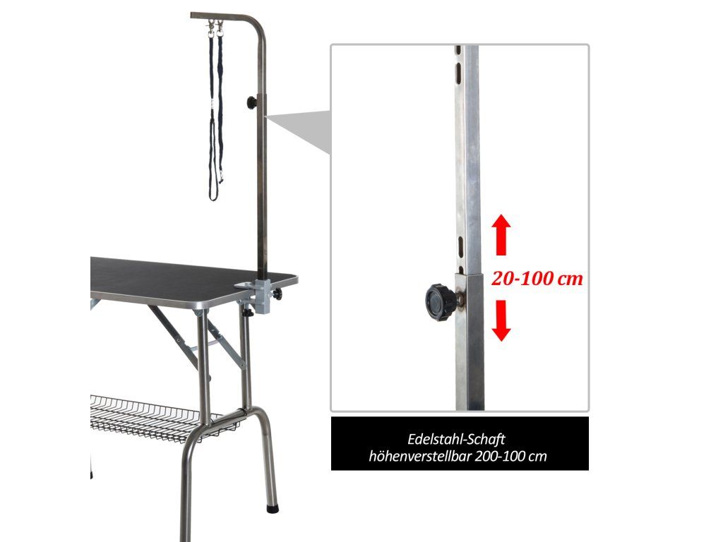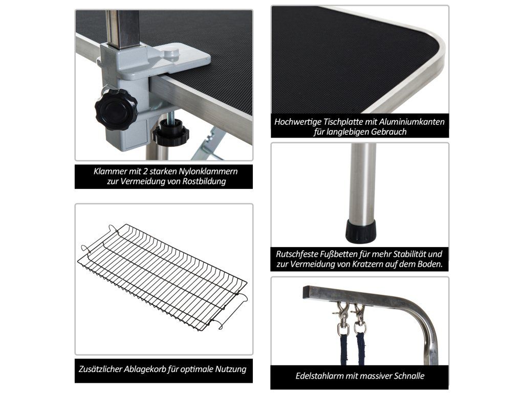 - Praktický trimovací stůl: Stříhejte svého psa a domácího mazlíčka bezpečně a pohodlně. Stabilní stůl nabízí dostatek prostoru, je robustní a je vybaven také odkládacím košem a šibenicí.
