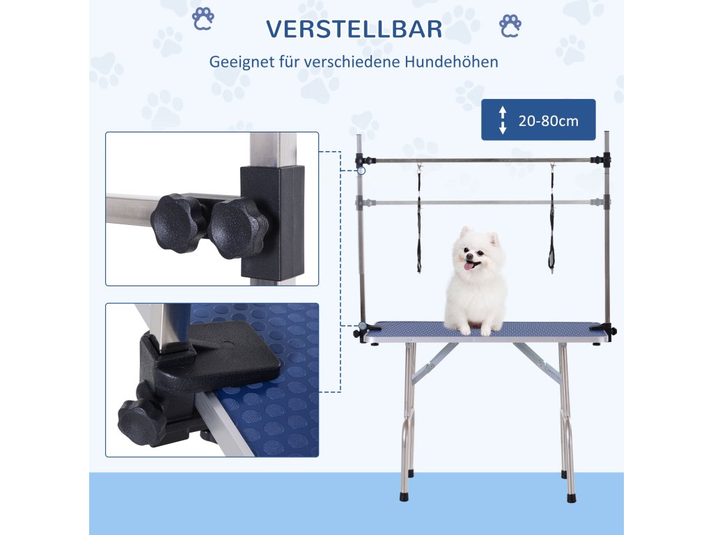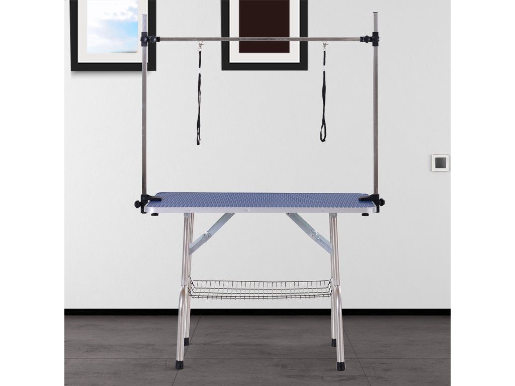 PawHut stůl na úpravu psů Výškově nastavitelný stůl na úpravu psů Skládací stůl na úpravu psů Stůl na úpravu psů Stůl na úpravu psů se spodním košem pro psy Kočky do 100 kg Modrá barva