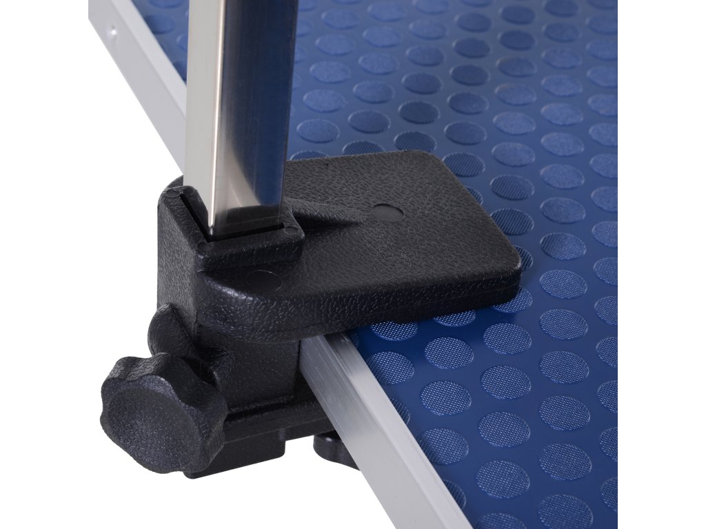 - Kovový rám: Pevný, robustní a odolný doplněk trimovacího stolu pro dlouhotrvající spolehlivost, s gumovými podložkami pod nohy, které zajišťují stabilitu na podlaze.