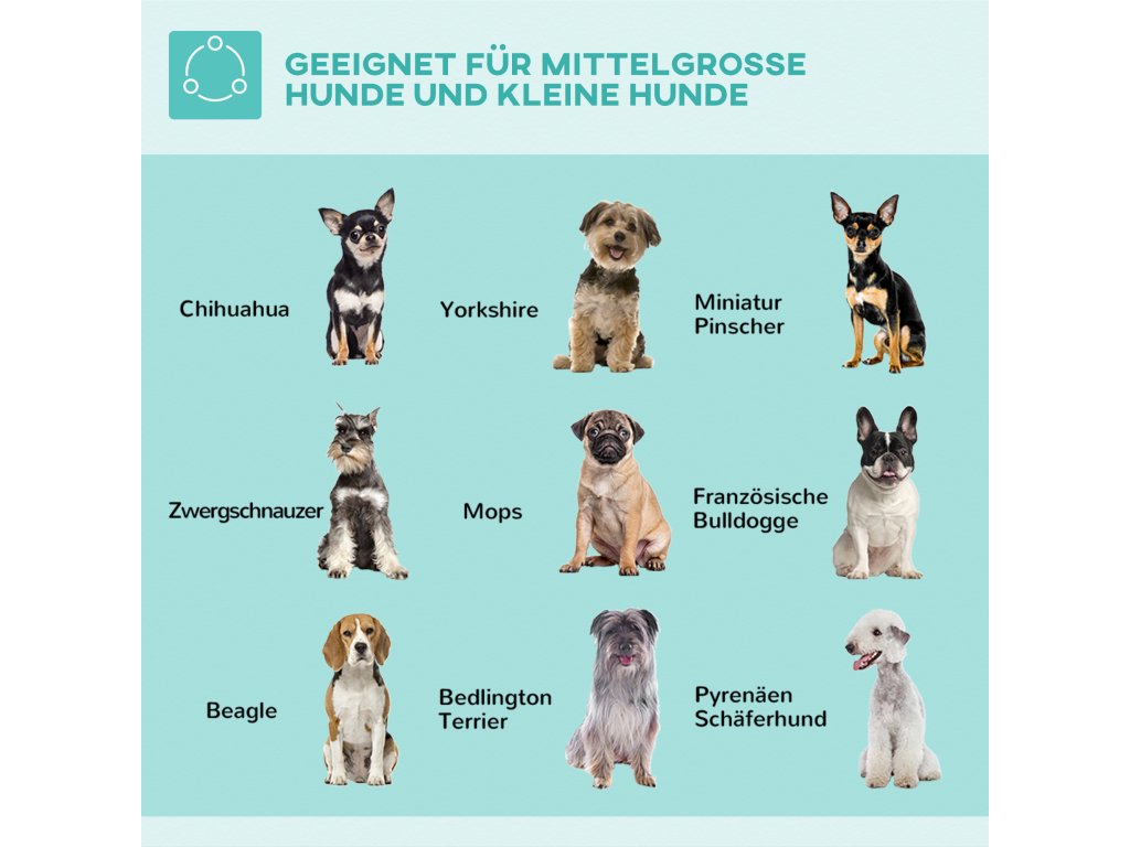 - ✔ Vhodný pro středně velké psy s hmotností do 20 kg a výškou ramen menší než 50 cm
