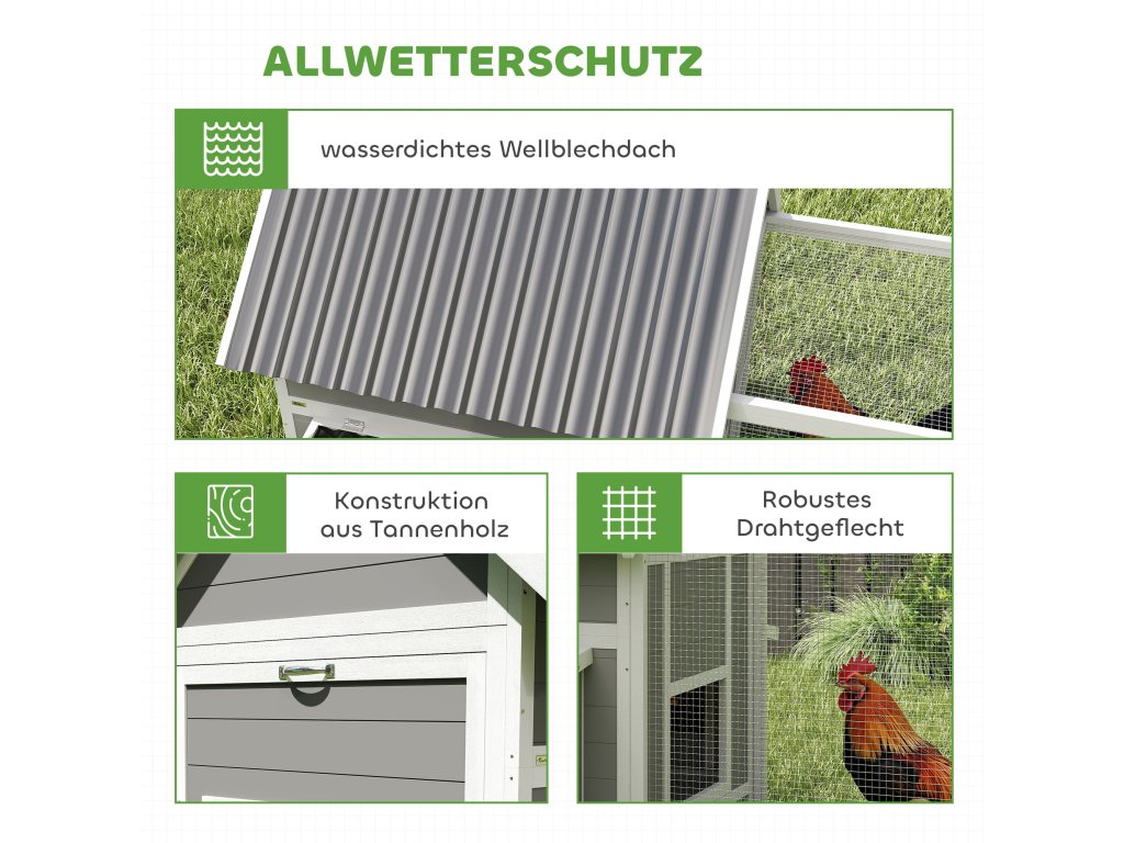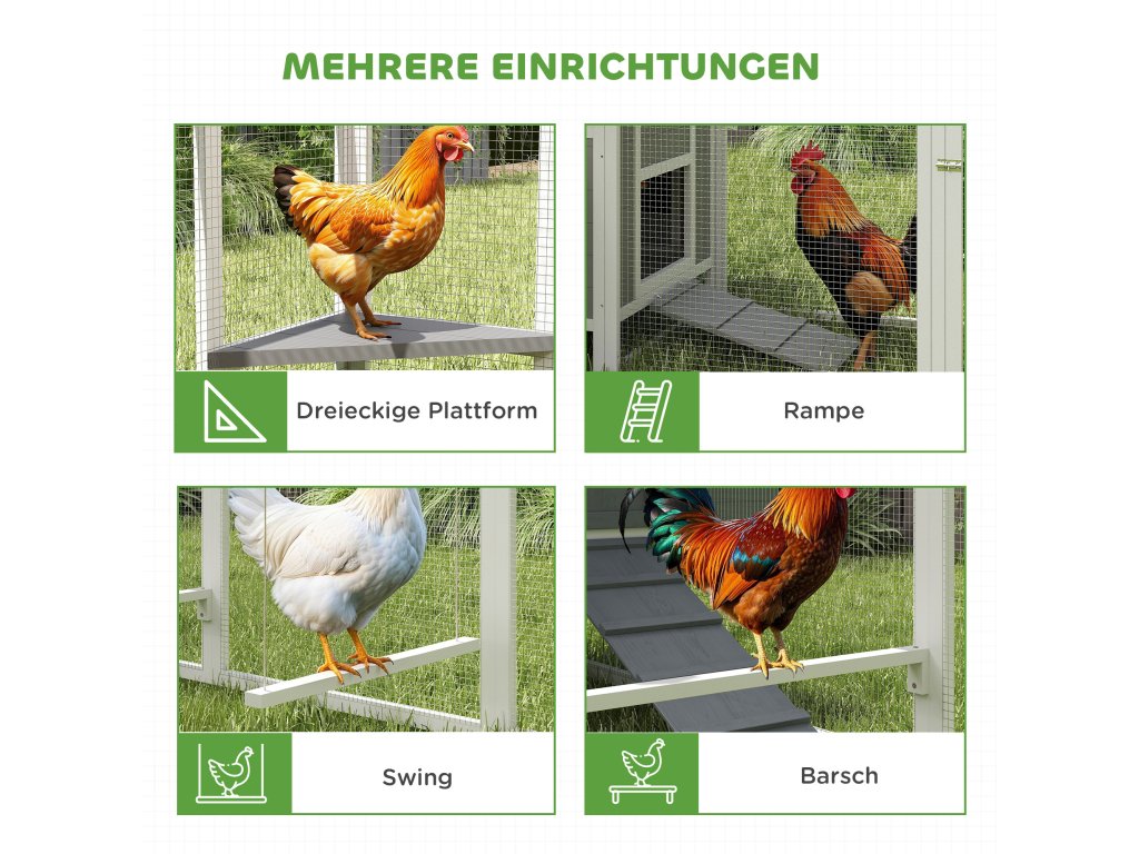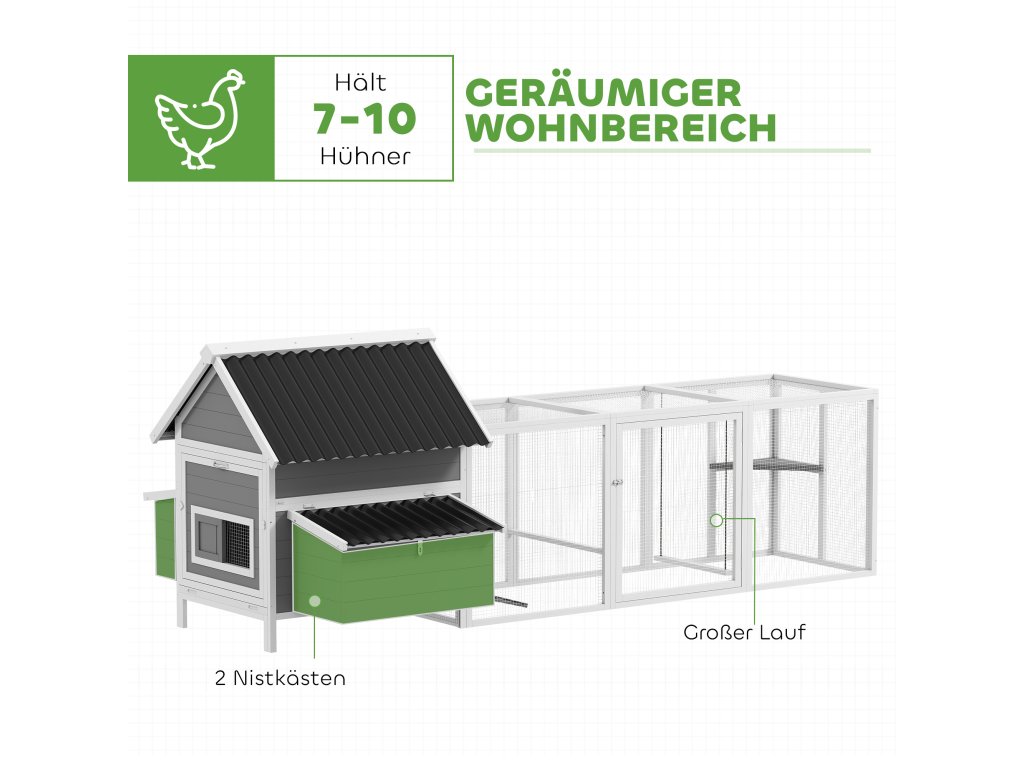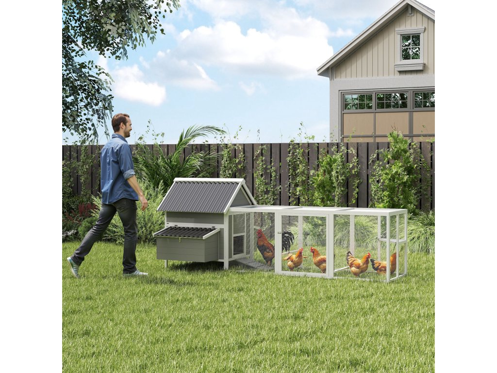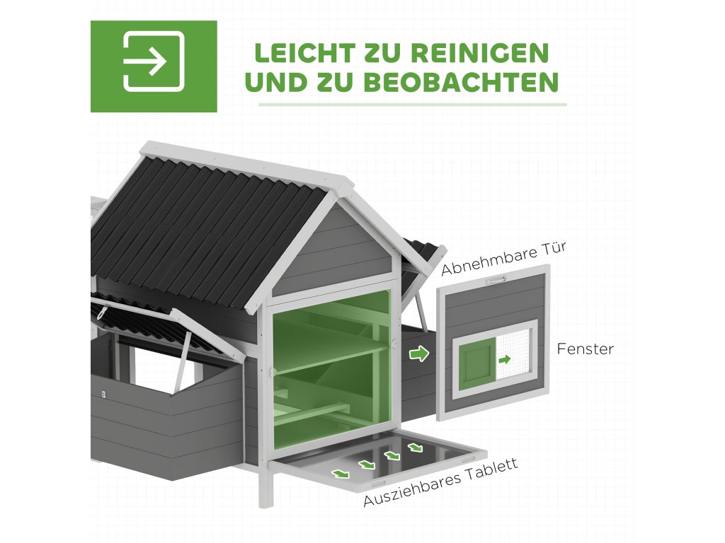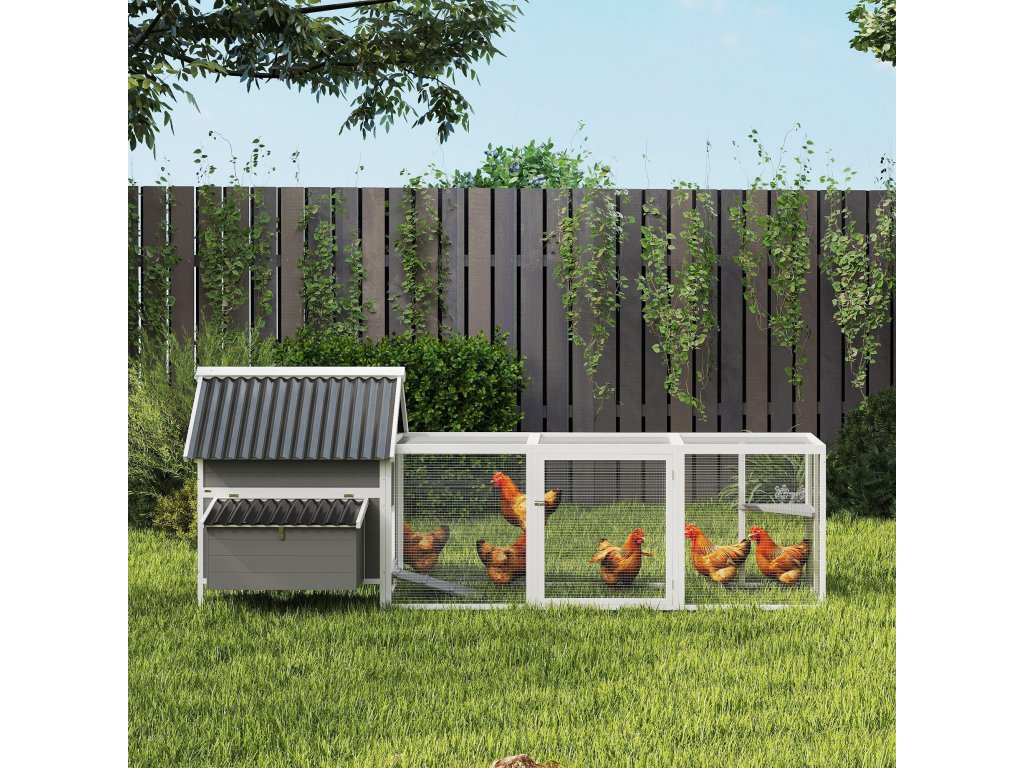 PawHut Velký kurník pro 7-10 kuřat, bidýlka, houpačka, okno, hnízdní budky, drátěné pletivo, šedý