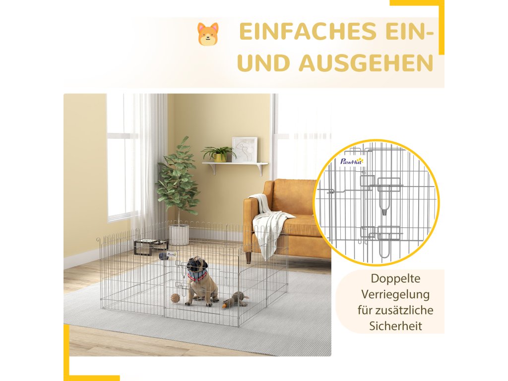 - SNADNÝ PŘÍSTUP: Bezpečně uzamykatelná dvířka umožňují snadný přístup do výběhu pro matky zvířat a štěňata. Uzamykatelná konstrukce zabraňuje útěku domácích zvířat a jejich ohrožení.