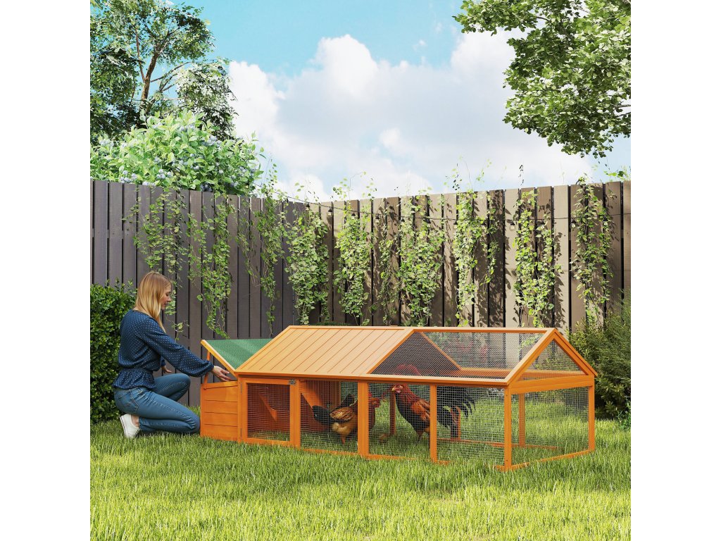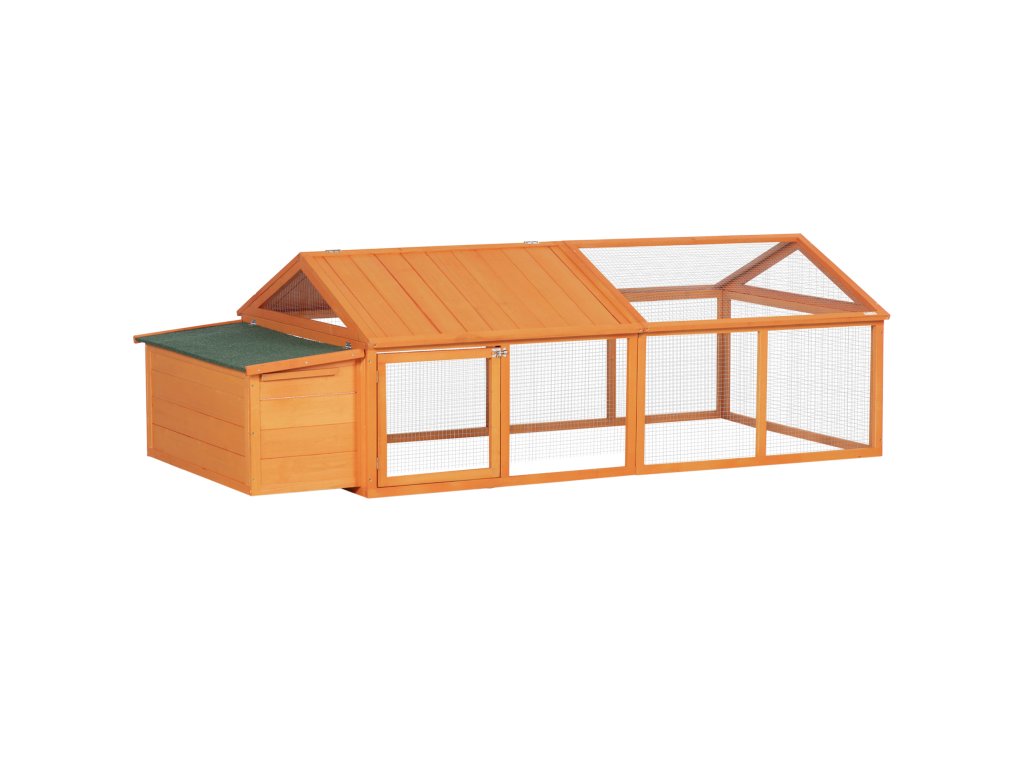 PawHut Výběh pro kurník 2,4 x 1,125 x 0,76 m, se zámkem, panty, střecha z jedlového dřeva, oranžová