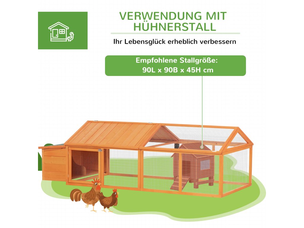 ✔ Používejte tento výběh pro kuřata s dalším kurníkem o rozměrech 90D x 90Š x 45V cm nebo menším
