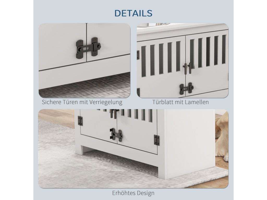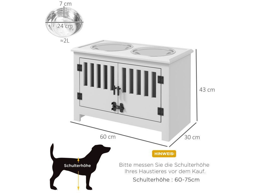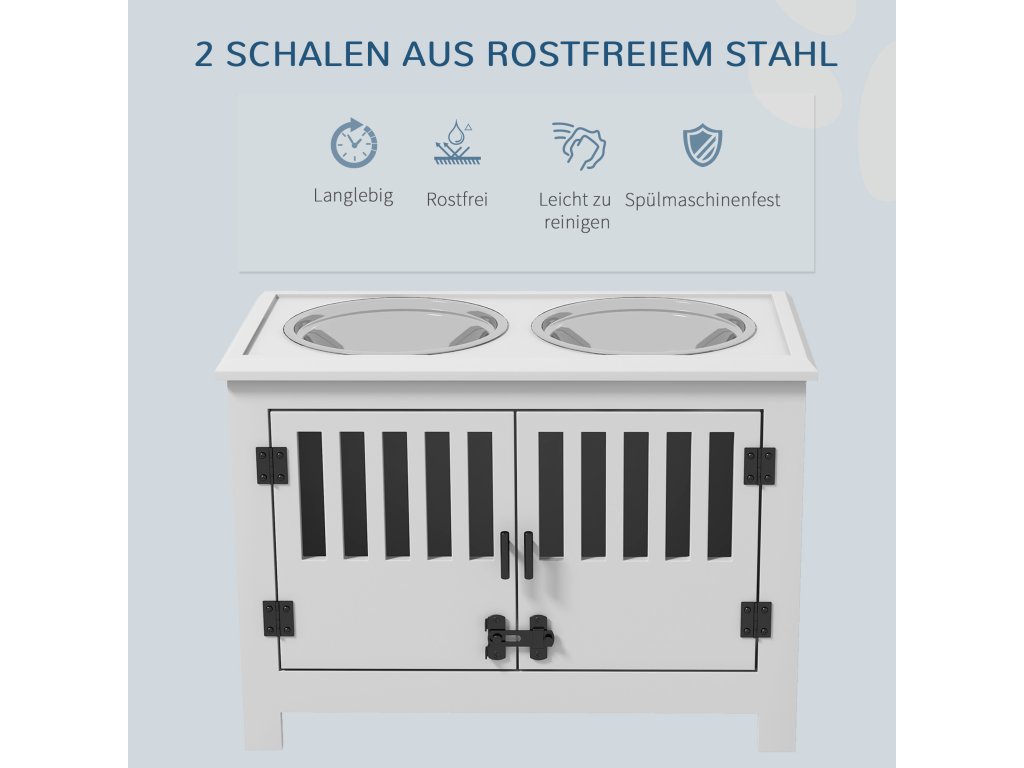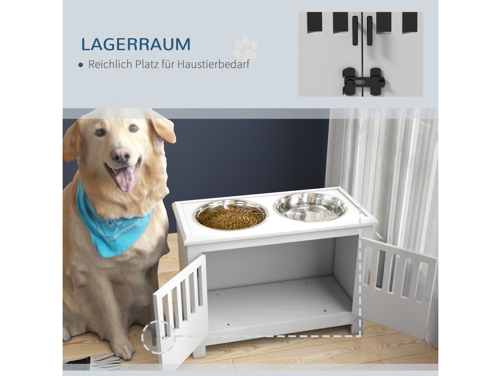 PawHut Vyvýšená krmná stanice pro velké psy, 2 nerezové misky, úložný prostor, 35,5x60x30 cm, bílá