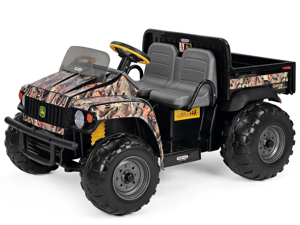 Dětský dvoumístný elektrický Gator italské firmy Peg-Pérego v liceci John Deere. Náklaďáček je určen pro děti od 3 let. Vysoký výkon motorů 350 W (2x175W) a baterie 12 V (12 Ah) postačuje na minimální dobu jízdy 30 minut. Rychlost 3,5 km/h, 6.8 km/h, zpátečka 3,5 km/h, maximální zatížení 60 kg, hmotnost vozítka 26 kg, licence John Deere, vzhled skutečného Gatoru, velký sklápěcí nákladní prostor s ručním sklápěním, odkládací přihrádky na nápoje, funkční klaxon, maximální stoupání 17%, určeno pro hrbolaté, zpevněné i nezpevněné povrchy. Dětská elektrická vozítka Peg-Pérego jsou dodávána včetně baterie a nabíječky. Akční nabídka: 20% sleva na baterie s novým vozemDárek při osobním odběruDoprava zdarma20% sleva na dílyDoplňkové parametry