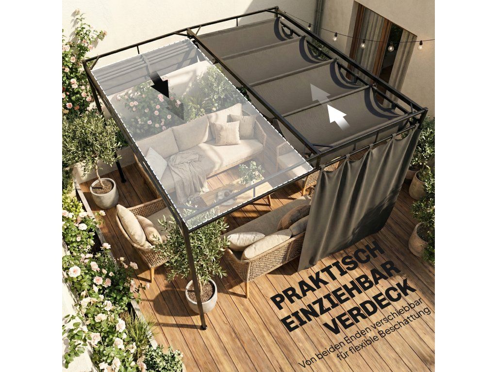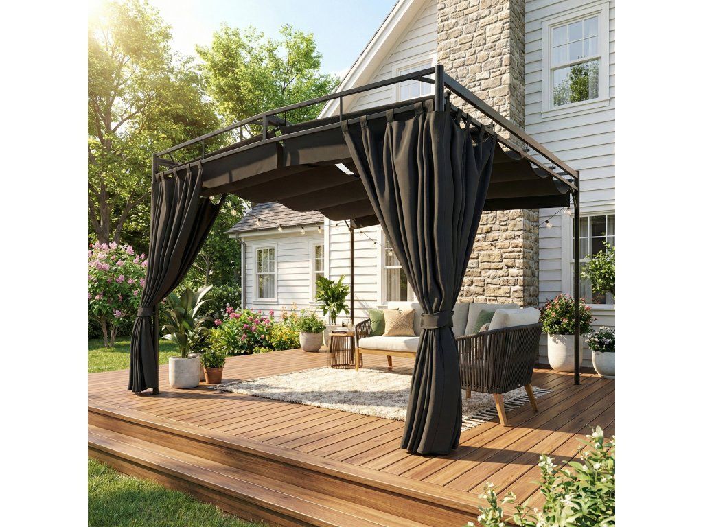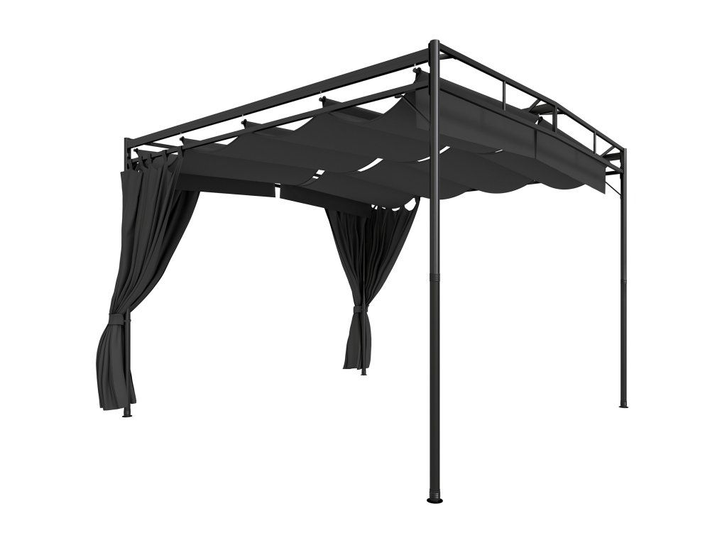 Pergola pavilon Outsunny 3x3m vodoodpudivá sluneční clona s nastavitelnou posuvnou střechou a závěsy, volně stojící