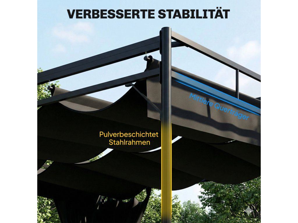 ✔ Práškově lakovaný kovový rám stříšky pergoly zajišťuje dlouhodobou a odolnou stabilitu a použití proti korozi