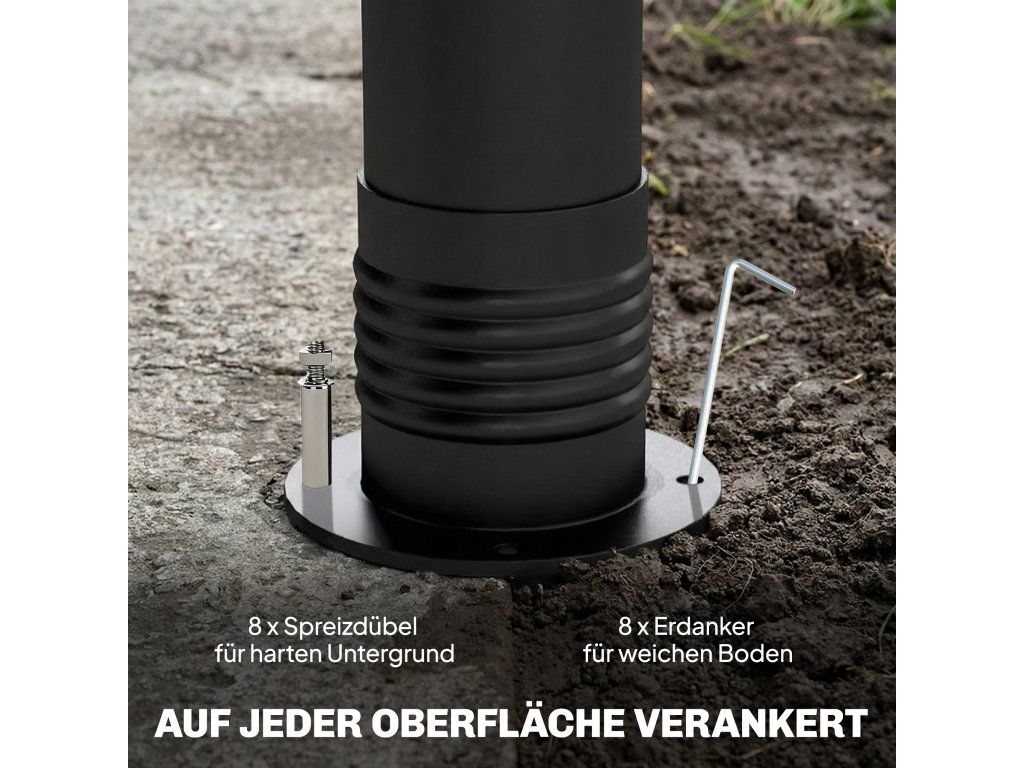 Zvýšená stabilita: Práškově lakovaný kovový rám s zemními kotvami nebo rozpěrnými šrouby poskytuje stabilitu na různých površích. Relaxujte s klidem v tomto spolehlivém venkovním prostoru, ať už na trávě nebo betonu.