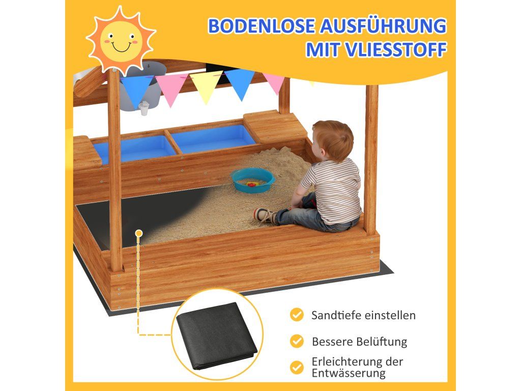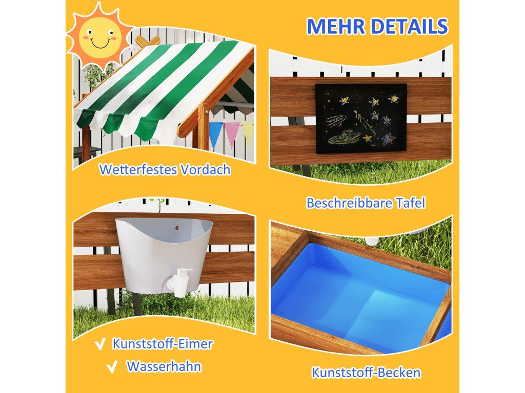 Rozsáhlá herní sada: Toto pískoviště ve tvaru domečku s lavičkou obsahuje hrací dřez, kyblík, dvě misky a tabuli, které zvou děti k tomu, aby popustily a projevily svou fantazii a kreativitu.