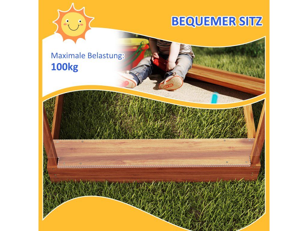 Dekorativní, robustní přírodní dřevo: Naše pískoviště je vyrobeno z masivního jedlového dřeva, speciálně vybraného pro venkovní použití, které zaručuje dlouhou životnost. Dřevo si zachovává svou přirozenou barvu a dodává vaší zahradě rustikální a atraktivní vzhled.