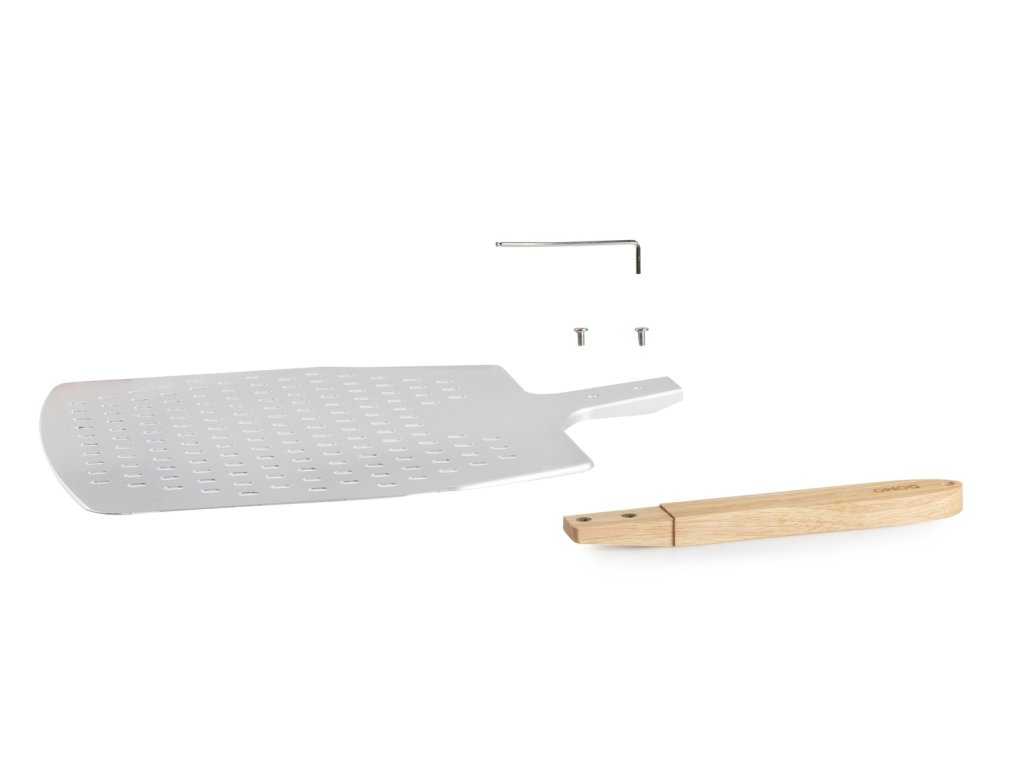 - Lopata na pizzu z pevného děrovaného plechu* s dřevěnou rukojetí