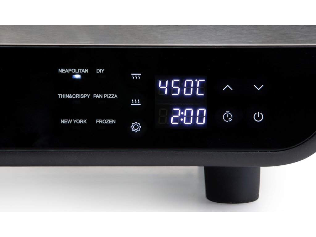 Digitální ovládání umožňuje nastavit teplotu v rozmezí 80 °C až 450 °C. Vysoká teplota zajišťuje autentickou chuť a strukturu. Díky dvěma topným tělesům z nerezové oceli a 6 programům, jako je neapolská, tenká a křupavá a mražená, můžete vytvořit jakýkoli druh pizzy.