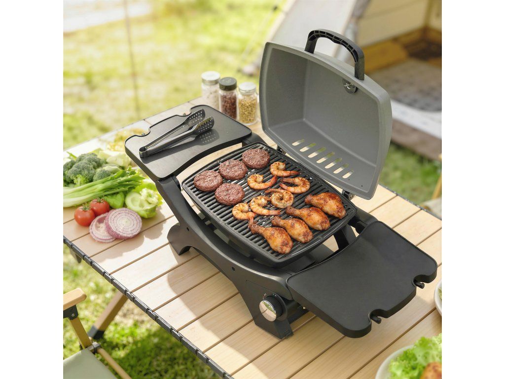 ✔ Stolní plynový gril nabízí grilovací plochu 1626 cm² se dvěma litinovými rošty