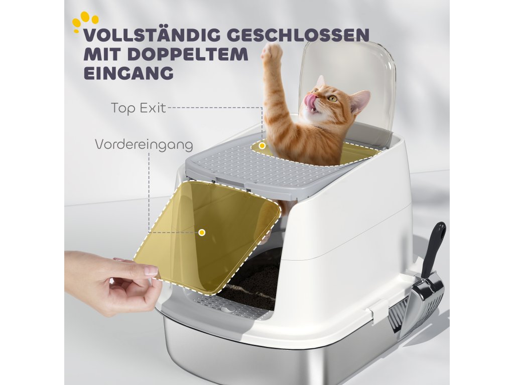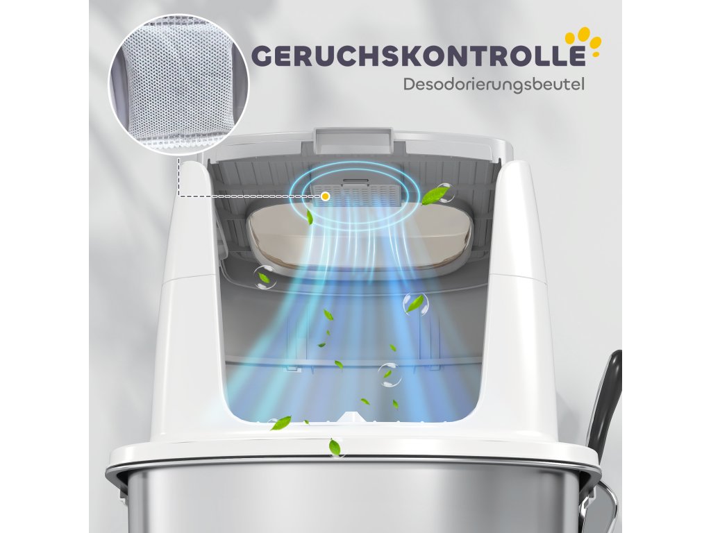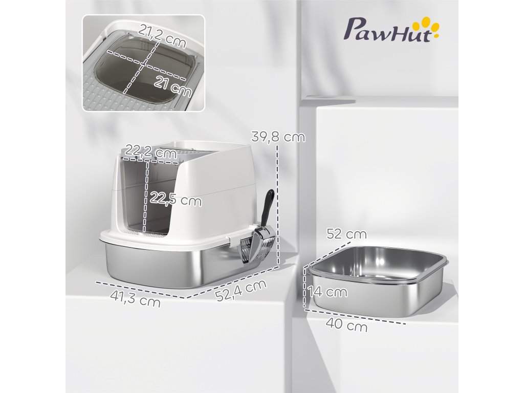 Podestýlka PawHut z nerezové oceli, uzavřená podestýlka s lopatkou, pachový sáček, výstupní dvířka
