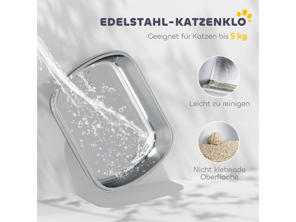 Vadí vám všude rozházené kočičí stelivo a neodbytný zápach? Nerezový zásobník na stelivo s víkem od PawHut zajistí čistotu a svěžest. Vložku odolnou proti poškrábání a zabraňující zápachu lze vyčistit během několika sekund. Chytrý design s předním vstupem a horním výstupem minimalizuje nepořádek. Integrovaný lapač steliva zachycuje volně se pohybující stelivo a díky neutralizátoru zápachu a lopatce je každodenní úklid rychlý a bez námahy - ideální pro domácnosti milující kočky.