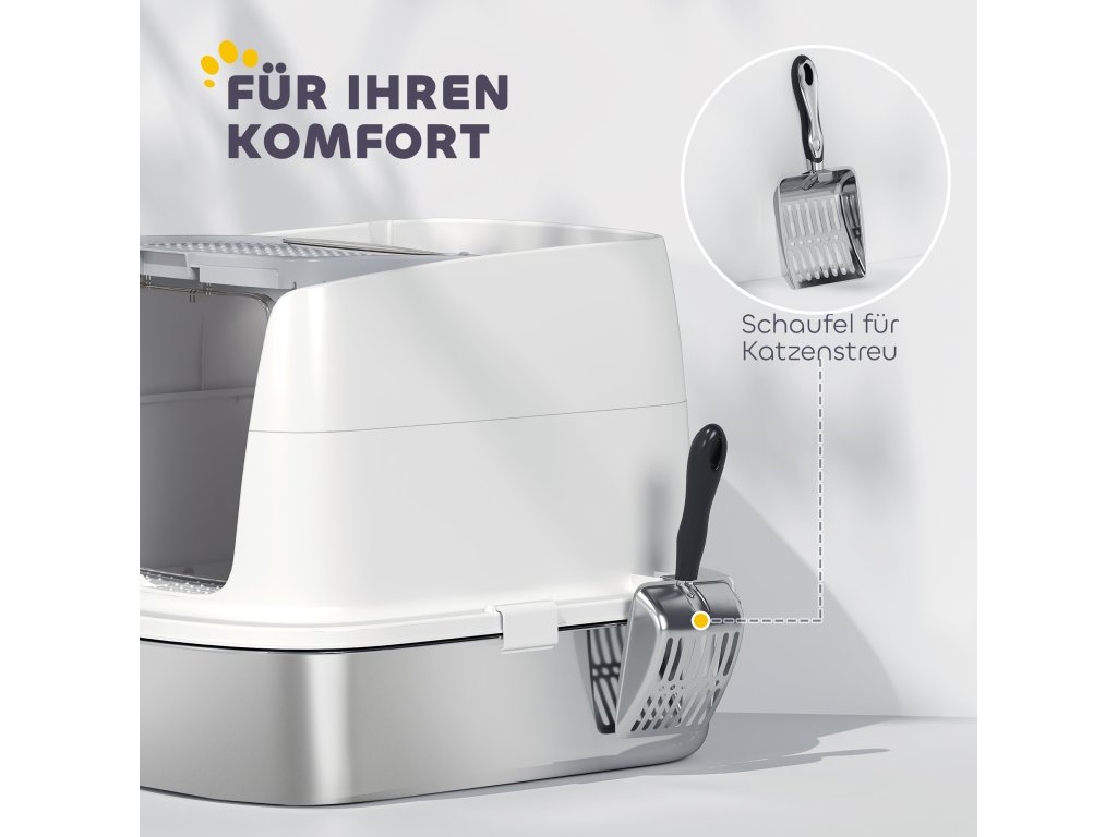 - ✔ Přiložená lopatka usnadňuje údržbu kočičího steliva