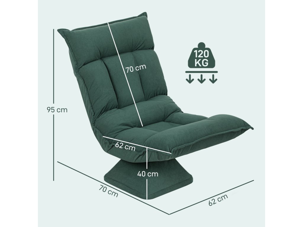 Podlahová židle HOMCOM s 5-směrně nastavitelným opěradlem, otočná, moderní čalouněná židle, zelená