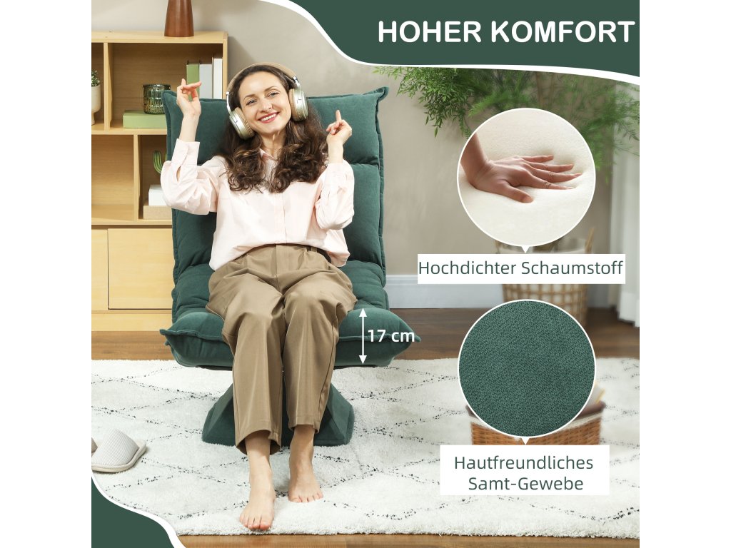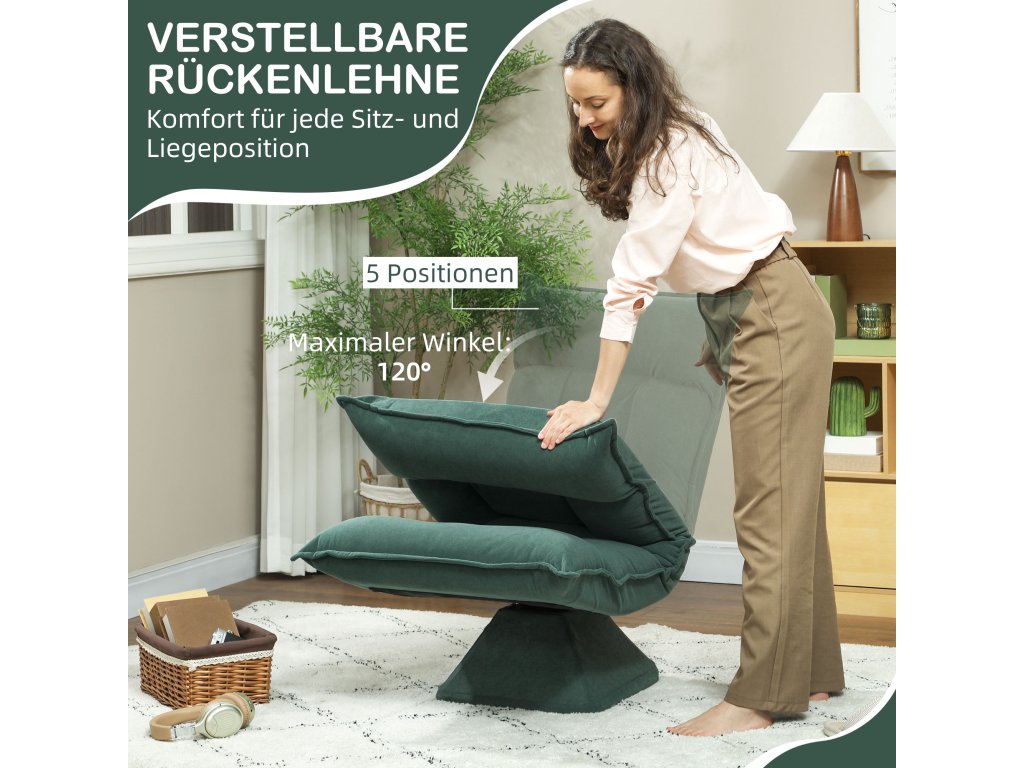 Odpočiňte si na konci dne s podlahovým křeslem HOMCOM, které nabízí volnost otáčení o 360° a umožňuje snadnou interakci s okolím. Hledáte pohodlí? Nastavitelné opěradlo pohovky Lazy Sofa se přizpůsobí vašim individuálním potřebám a sníží vaše napětí. Její robustní ocelový rám slibuje dlouhodobou spolehlivost. Proměňte svůj domov v oázu pohody s tímto flexibilním a útulným kusem nábytku.