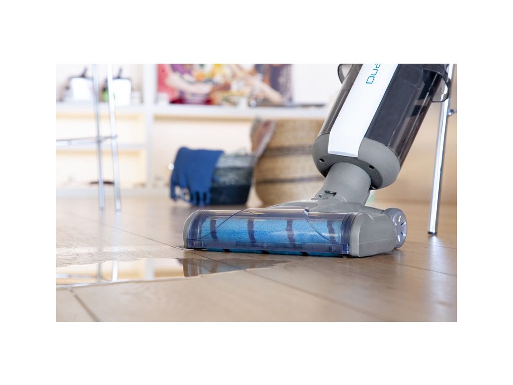 Elektrický aku čistič podlah s odsáváním zvládne v jednom kroku perfektně vyčistit podlahu, sebrat nečistoty a odsát přebytečnou vodu. Vytírání vlhčeným rotačním válcem z mikrovlákna ušetří až 90% vody proti běžnému vytírání např. pomocí mopu a vždy vytírá jen čistou vodou. Rotační válec spolu s výkonným odsáváním také dokáže z podlahy sebrat i velmi hrubé nečistoty, či vysušit rozlitý nápoj a podlahu zároveň do čista vytřít. Po skončení úklidu jednoduše mop můžete rozebrat a jednotlivé části omýt, nebo využít automatické funkce samočištění a válec vyprat v k tomu určené čistící a dobíjecí základně.