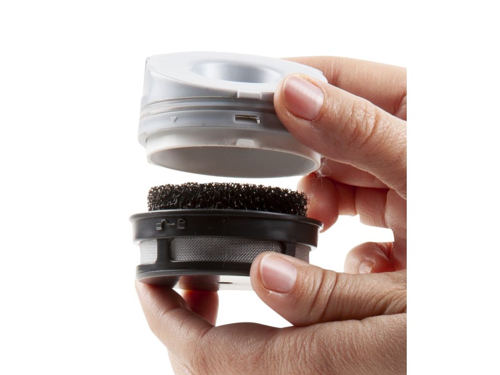 - Jemný nerezový filtr chránící jemný pěnový filtr na výstupu vzduchu