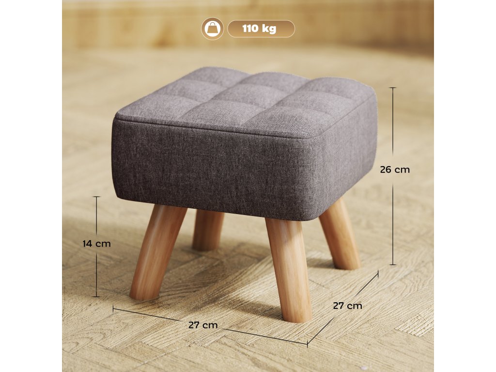 - Stylový design: Zapůsobí jednoduchým čalouněným povrchem a čistými liniemi, díky nimž je tento malý taburet na nohy v obývacím pokoji decentním a elegantním doplňkem každého interiéru.