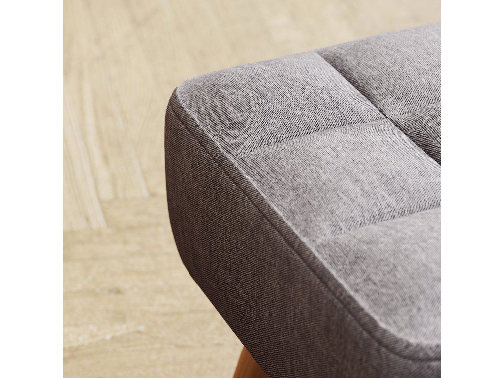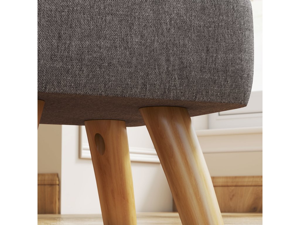- Robustní základna: Podnožku podpírají robustní nohy z kaučukového dřeva s protiskluzovými podložkami pod nohy, které zajišťují stabilitu i ochranu podlahy.